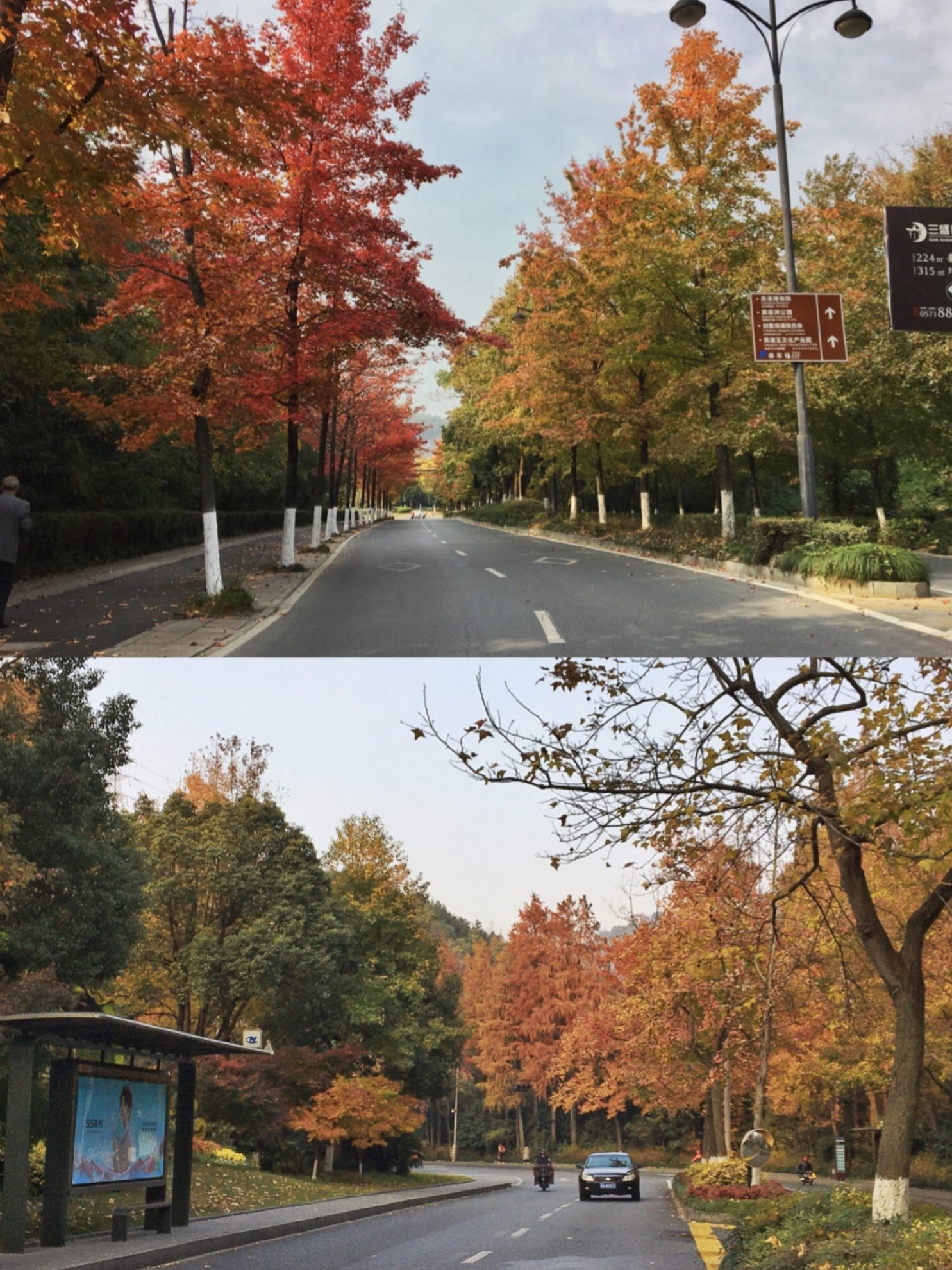 从浙江大学玉泉校区到植物园门口这一段,朋友推荐过,说非常美,今年秋天去看看