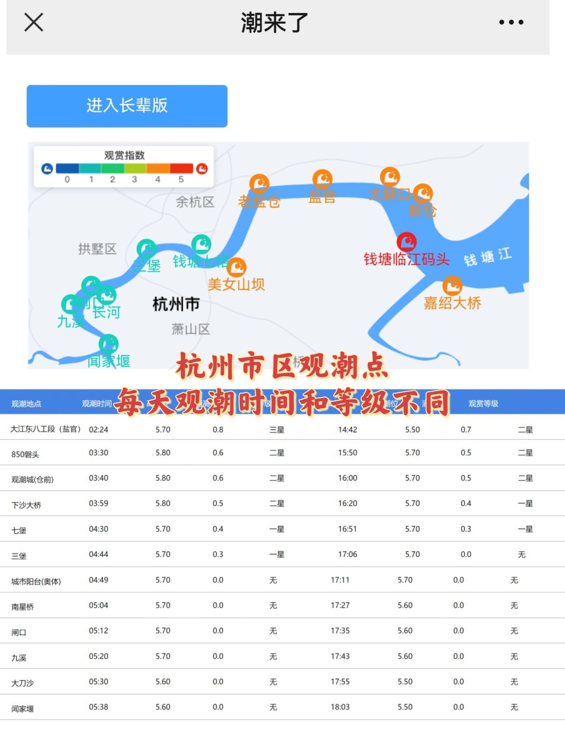 1观潮务必关注天气预报,了解潮汛时间,安全观潮点