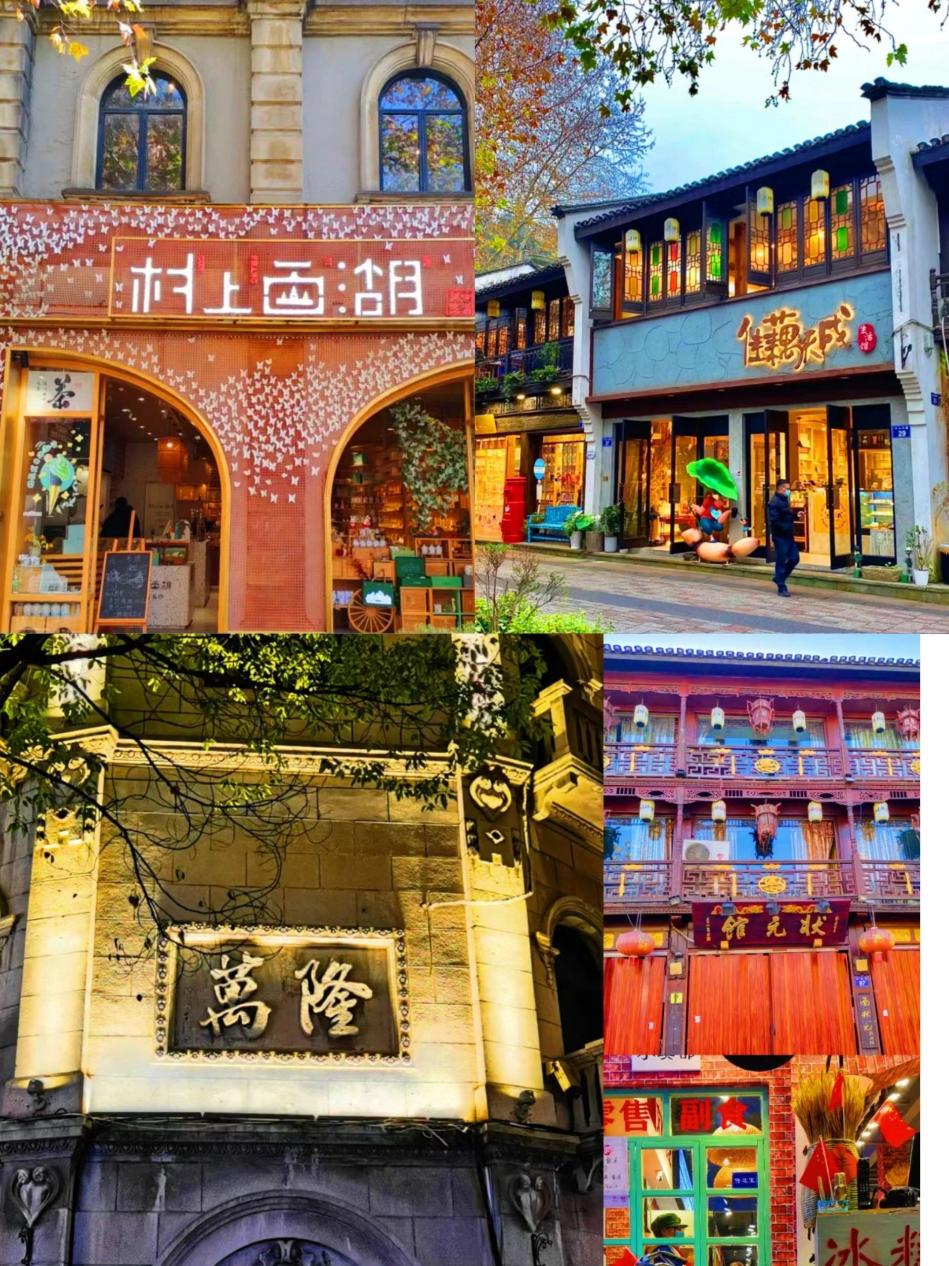 有很多店铺和文创空间,晚上有市集