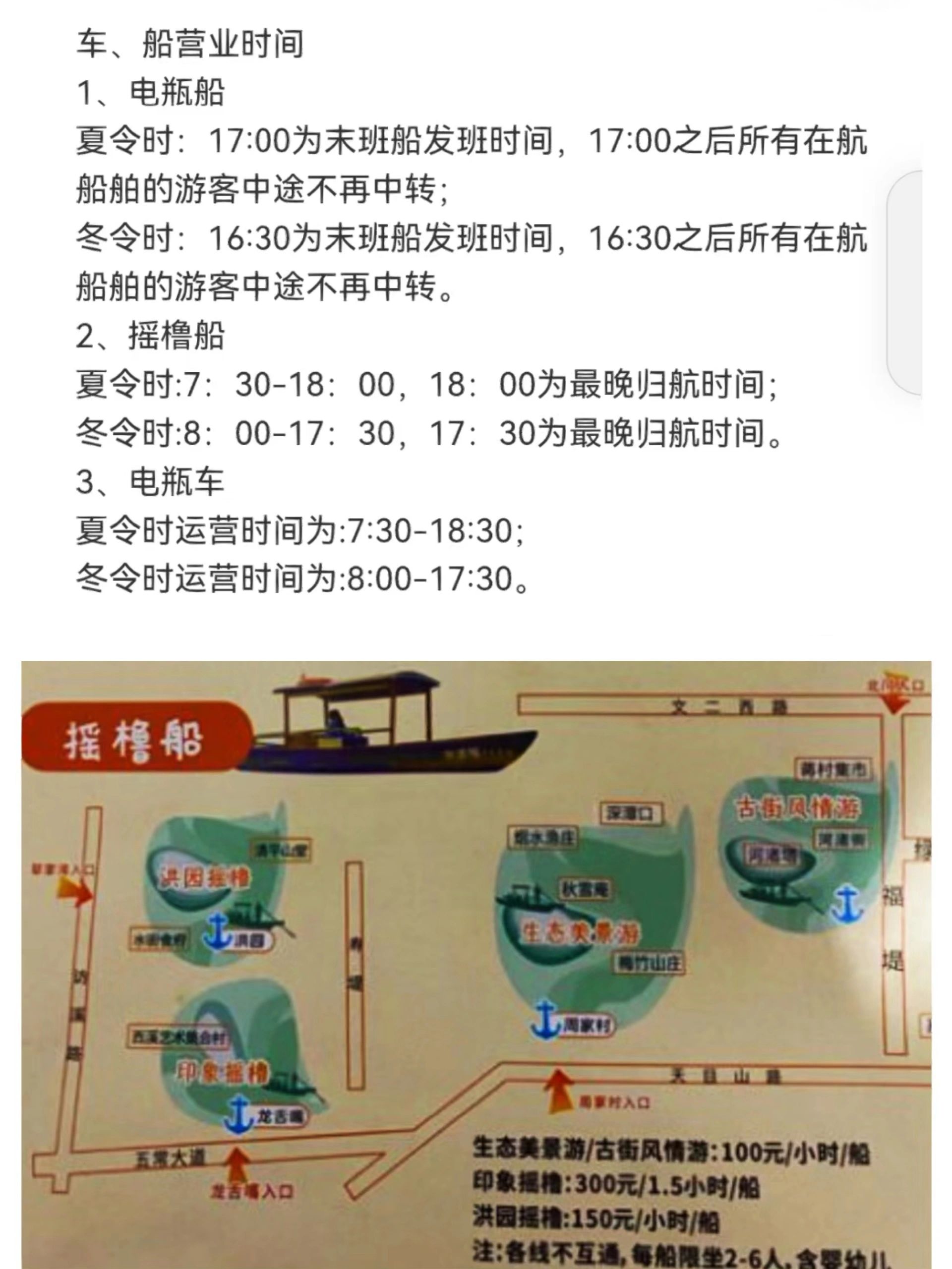 2.电瓶船:60r一人(含4个码头)