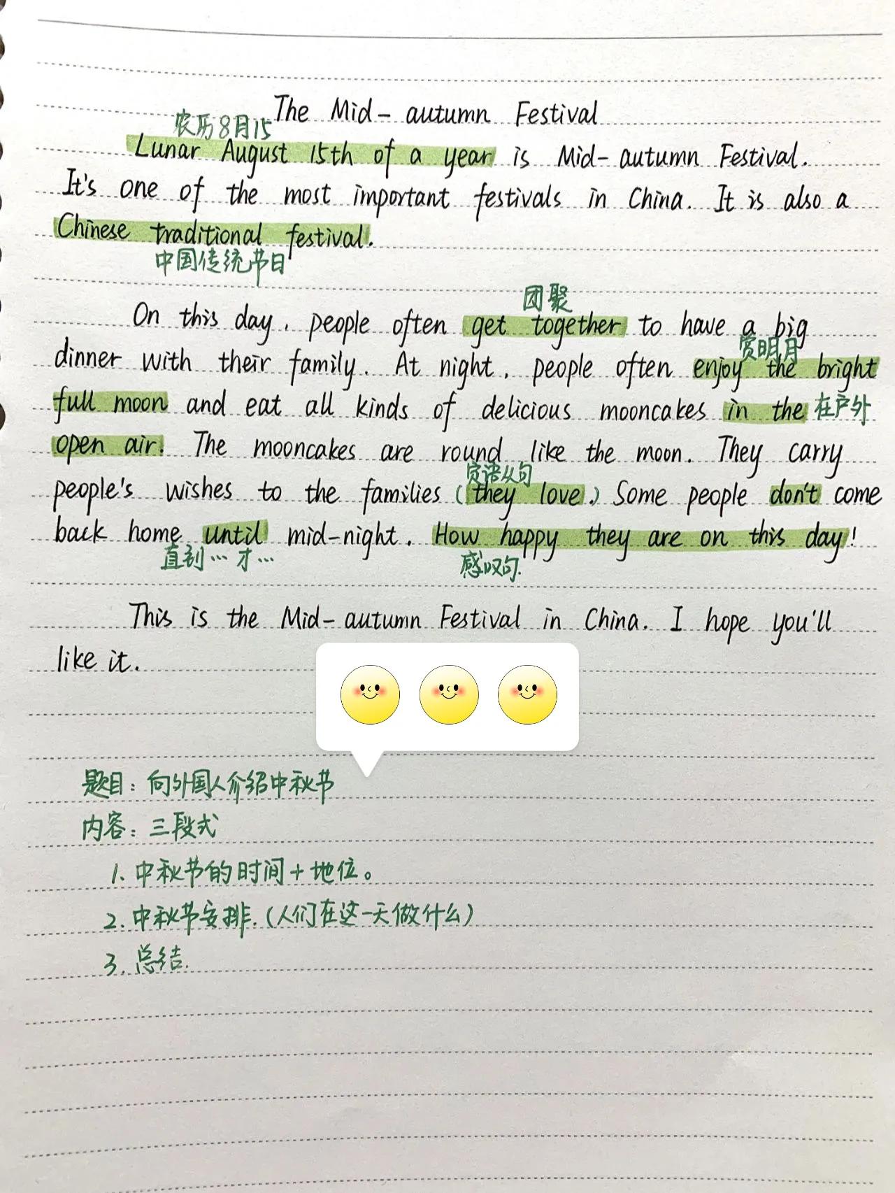 2023年中秋节,国庆节,热点英语满分作文,提前发给同学们一份,作业没有完成的好