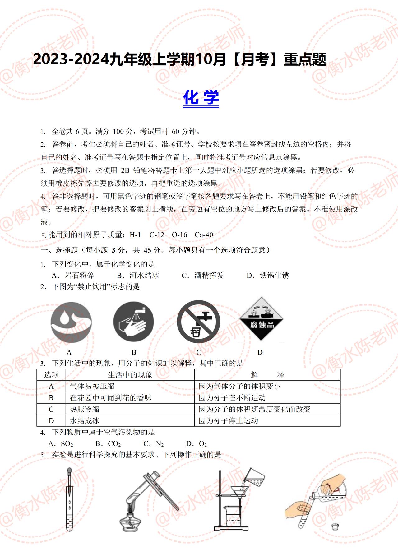 九年级上册化学,十一假期过后,第一次重大月考重点必出考题,考试的重点全部都在这里,月考试卷根据不同的省份地区和版本编写,想要获取自己城市月考试卷的,记得跟我沟通和联系哦。