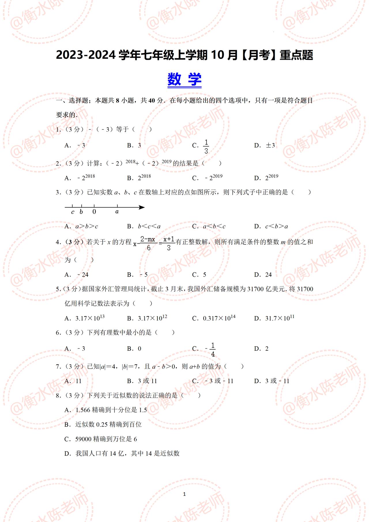 七年级上册数学,10月1日假期过后,很多学校组织大家考试,老师按照不同的城市、版本,编写的月考重点考题发给大家,临考之前认真做一遍,想要获得班级前三,这套月考试卷认真做完哦,想要获取自己城市月考试卷的同学,记得跟我沟通和联系哦。