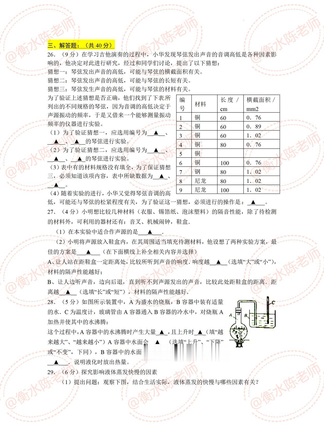 八年级上册物理,10月1日假期过了之后,物理月考试卷重点考题,提前发给同学们一份,物理成绩不是很理想的同学,考前认真做一遍,让你稳考前3哦,想要获取自己城市月考试卷的同学,临考之前记得跟我联系沟通哦。