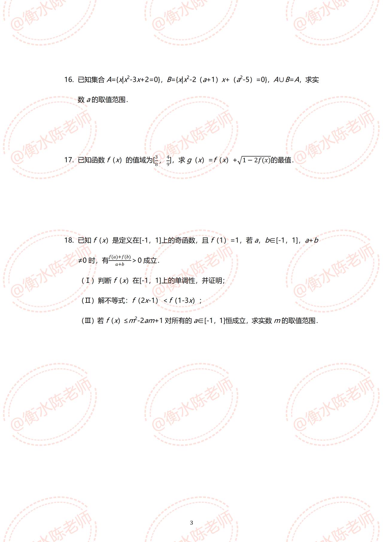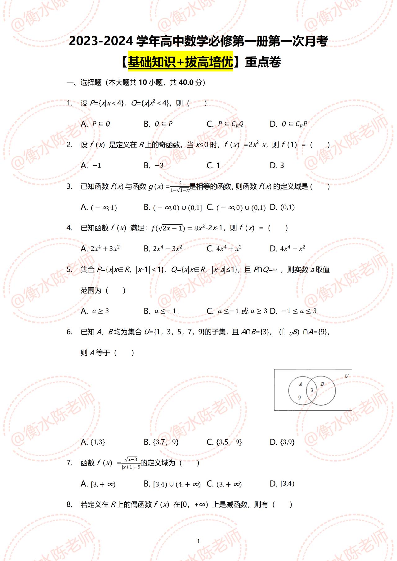 高中数学,必修第一册,国庆节开学后,第一次月考必出重点试卷,同学们认真练习一遍,数学试卷根据不同的城市、版本编写的,数学成绩不理想的考生,考前记得做完哦,让你稳考班前3哦,想要获取自己城市高一月考试卷的,记得和我沟通和联系哦。