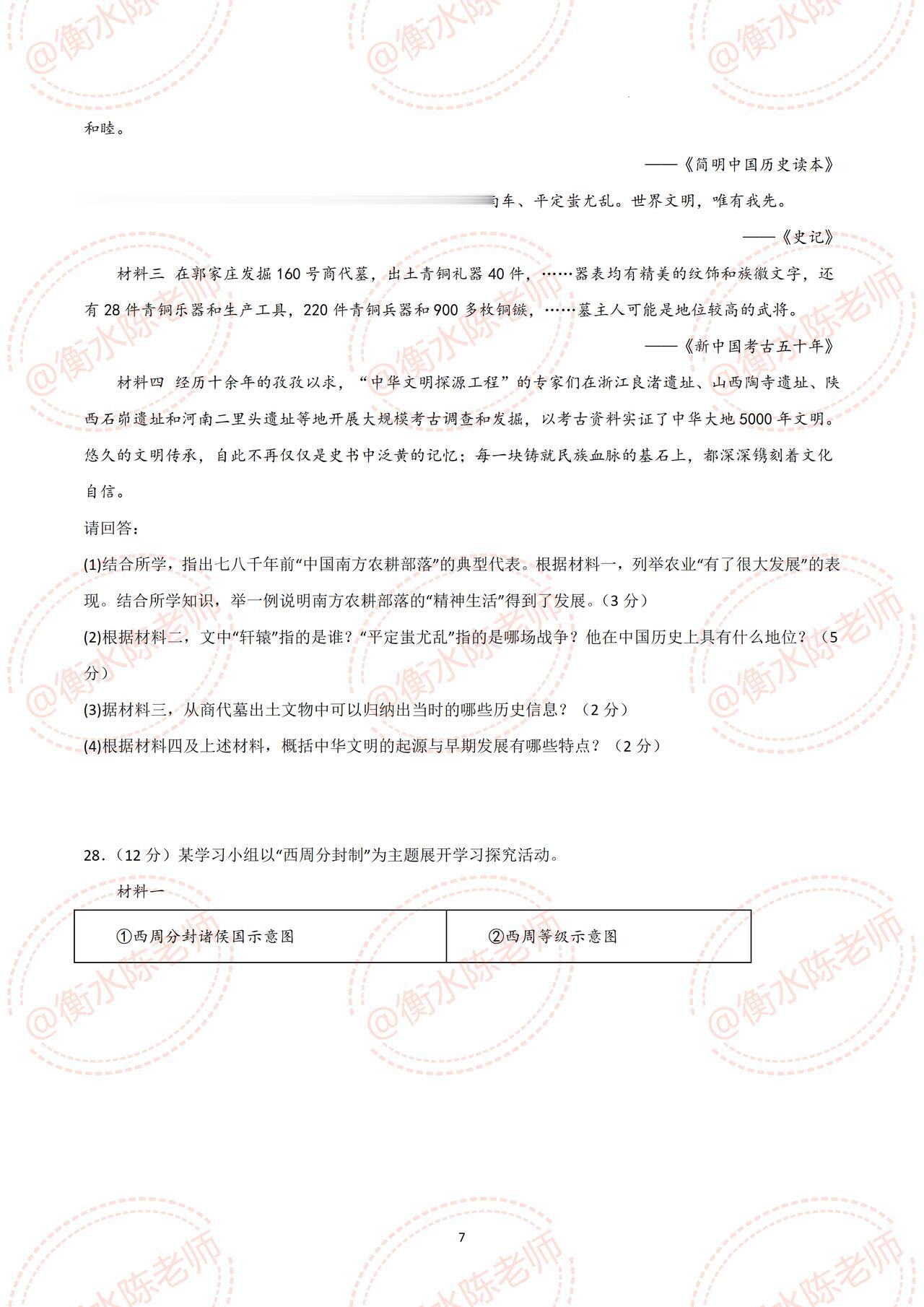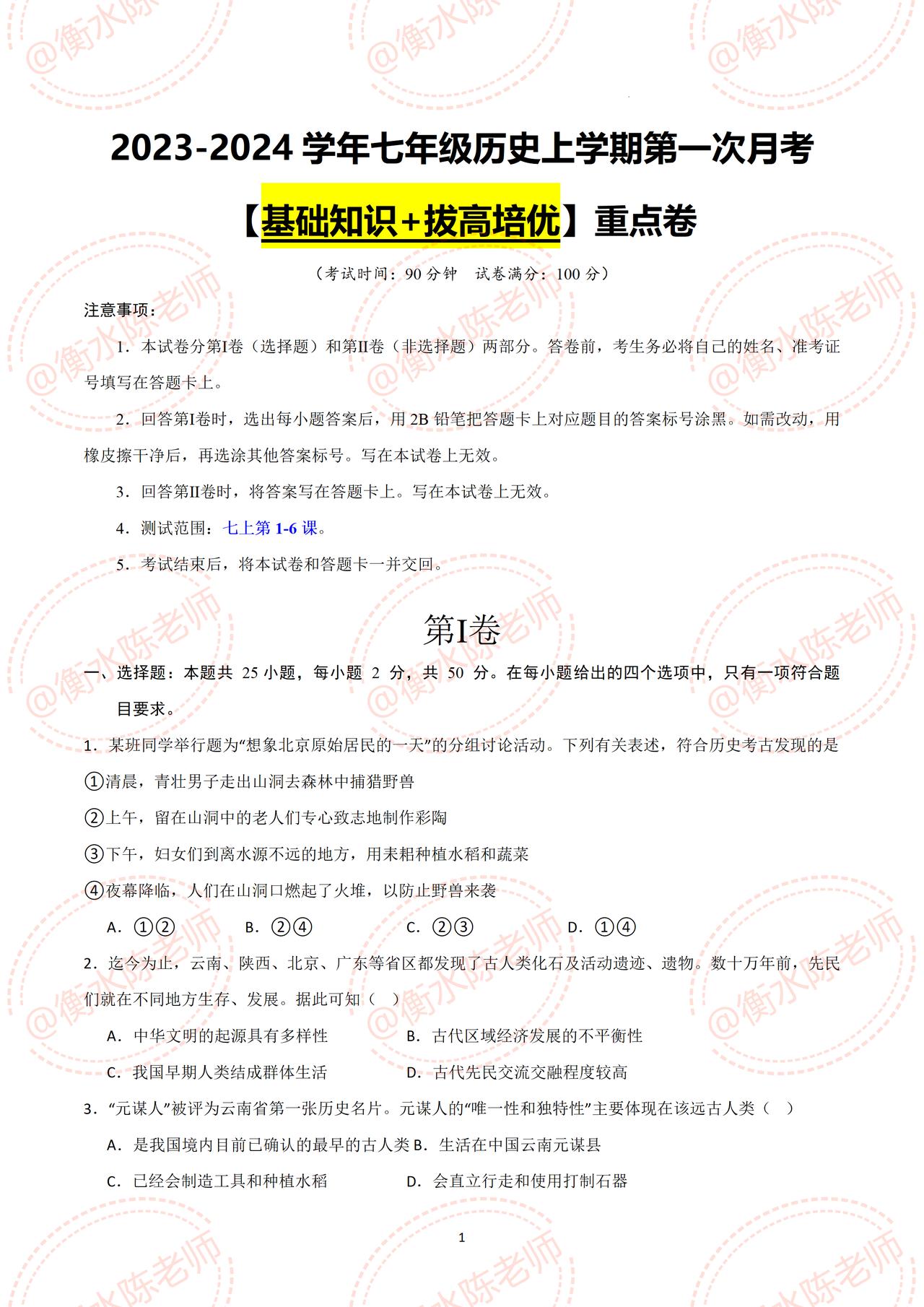 七年级上册历史,国庆节开学后,考试必出重点考题,这次考试很关键的,是同学们升入初中以来,第一次参加考试,要引起重视,这套考试根据不同的城市、学校编写的常考热点考题,想要获得自己城市、学校月考试卷的考生,记得跟我沟通哦。