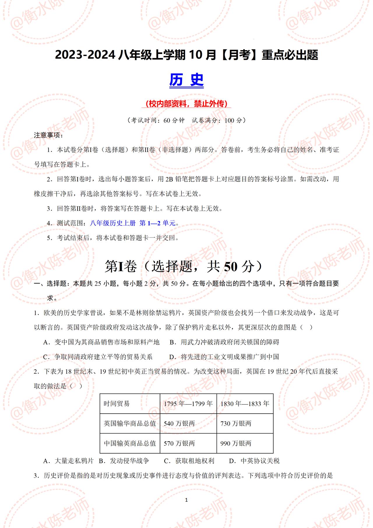 八年级上册历史,联合全国30多个省份名师编写的考试重点卷,根据不同的城市、学校,考试重点编写而成,历史成绩比较差,老是成绩提不上去的,一定要做一遍自己城市对应的考卷,想要获取的,和我沟通联系哦,让你少走很多弯路,考试分数让你多考30以上哦。