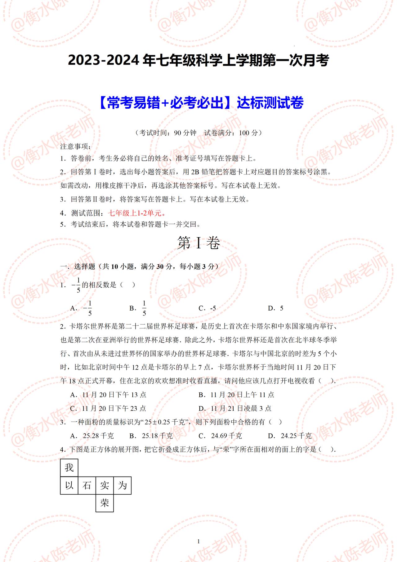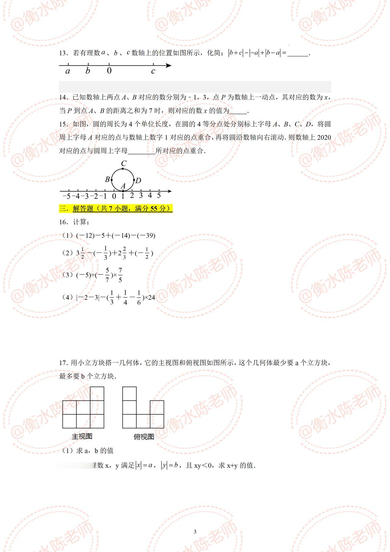 七年级上册数学,按照不同的城市、版本、学校,考试大纲编写的第一次月考重点考题,提前给大家发布出来,数学成绩一直在60以上,成绩一直提不上去的考生,提前做一遍自己对应城市月考试卷,再强调一遍,做一遍自己城市的月考试卷,这样的考题把握精准哦,想考出好成绩,进入到班级前三的考生,记得和我沟通哦。