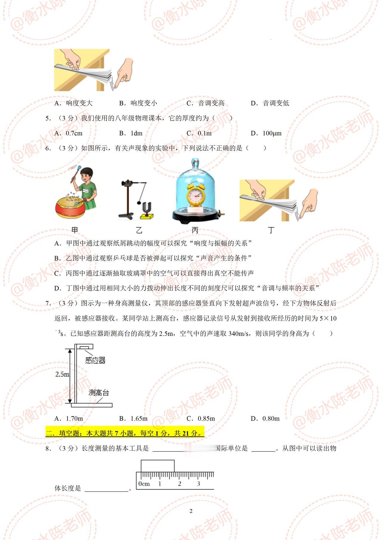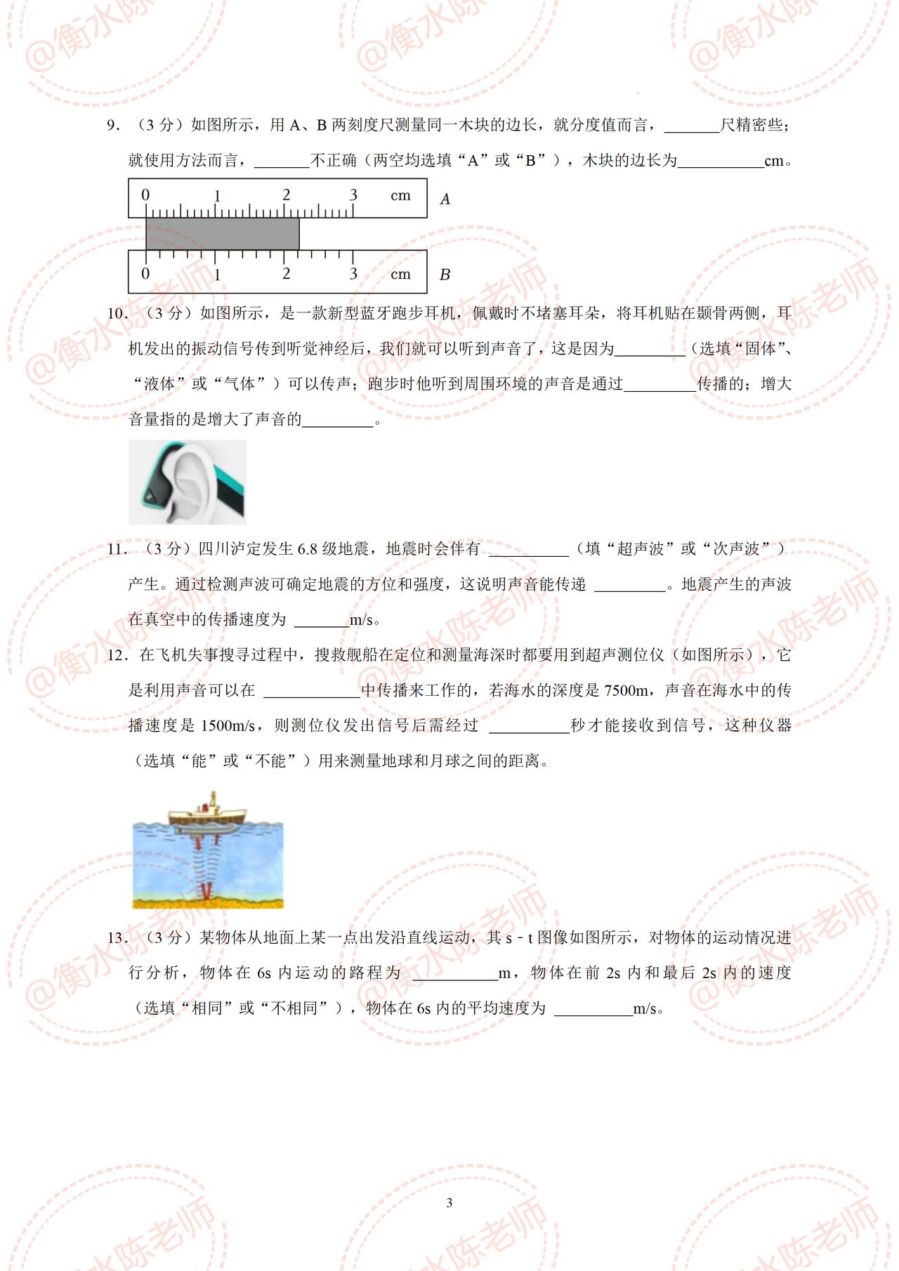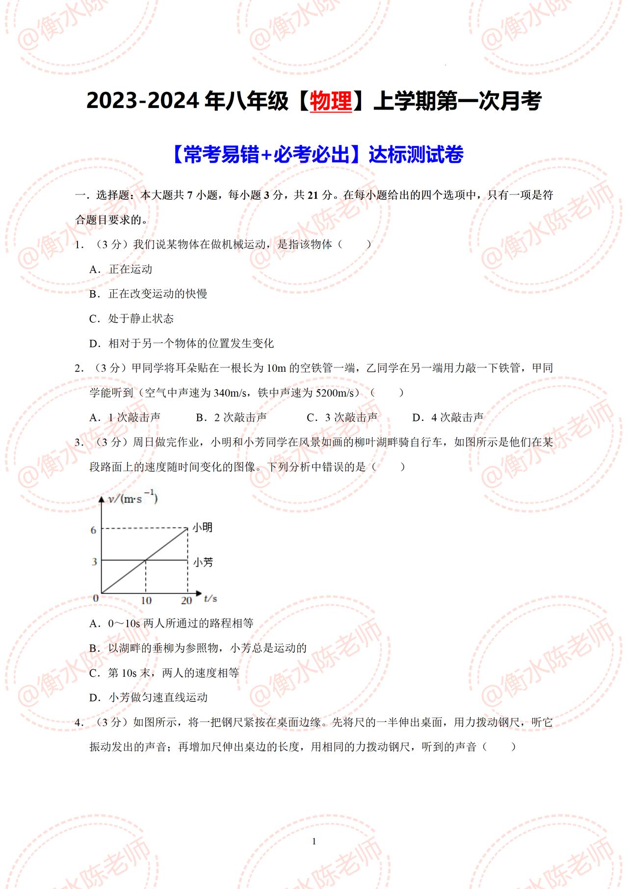 八年级上册物理,国庆假期开学考试必出重点热点考题,月考试卷根据不同的城市、学校,考试大纲编写的,考前一定要做自己城市的月考试卷,考题的内容把握比较精准,让你考试中少走很多弯路哦,想要获得好成绩,进入班级前三,记得赶紧找我沟通哦。