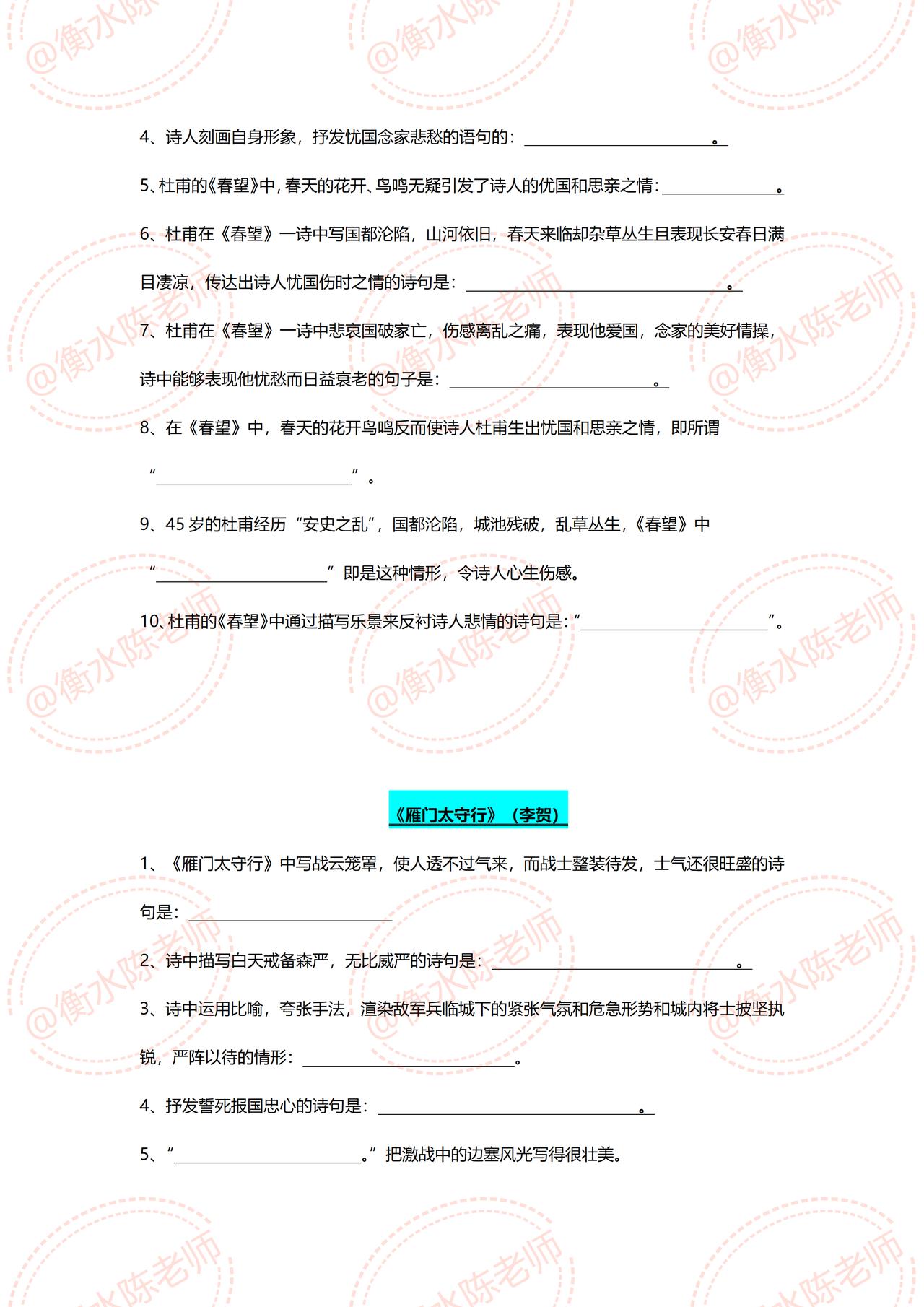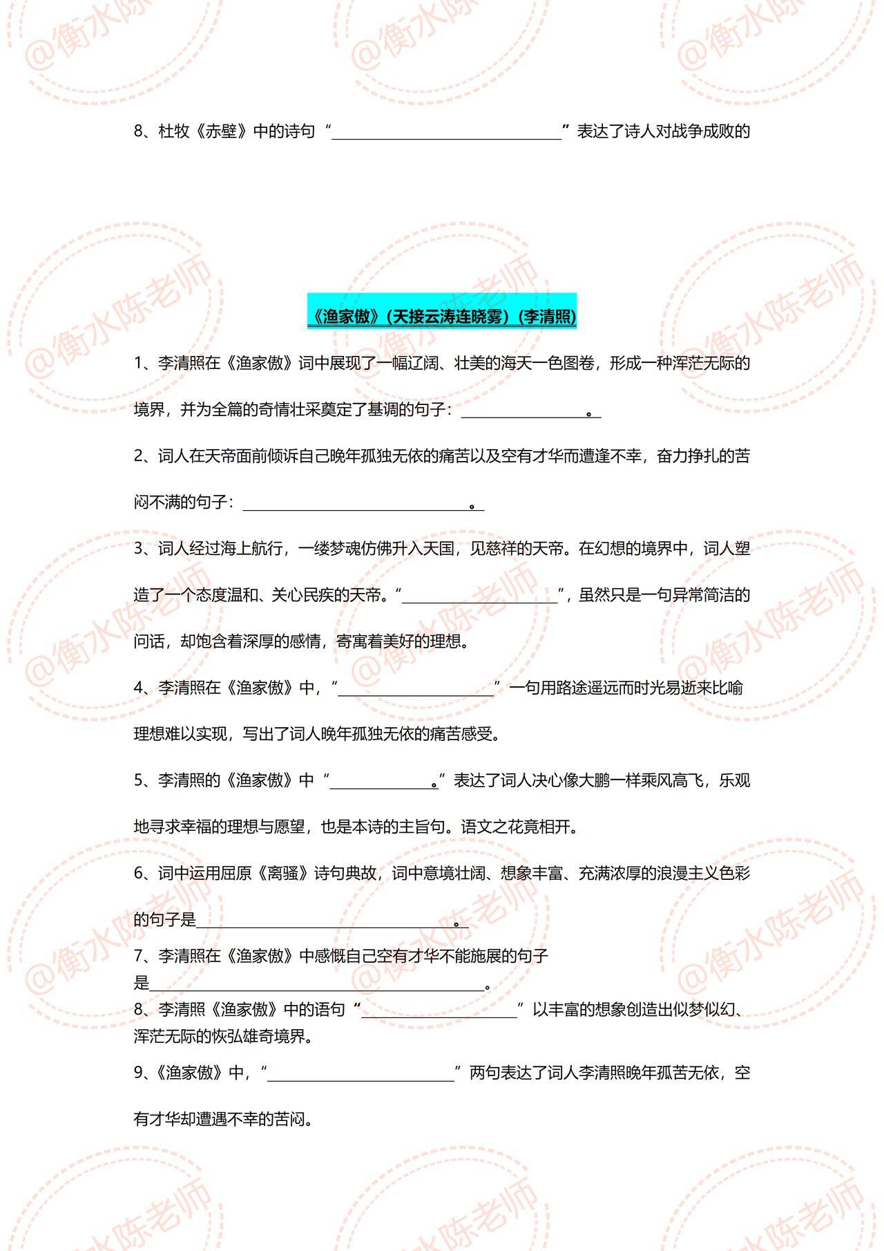 八年级上册语文,国庆节开学考试,古诗词情景默写必出考题,提前给大家划出重点,考试之前认真背一遍,让你考试不扣1分哦,试卷中的重点全部为大家编写好了,赶紧保存打印出来,由于资料比较多,只能发布一小部分哦,想要获取全部的,和我沟通即可。