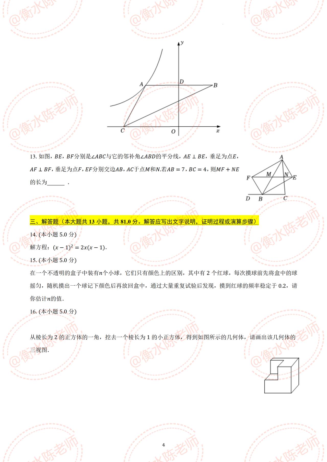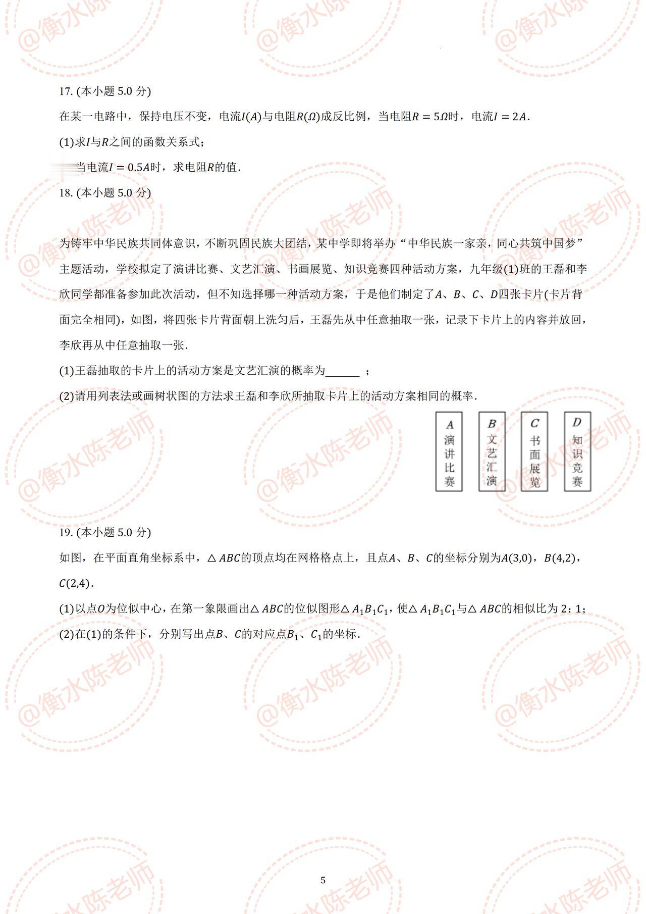 九年级上学期数学【期中考试】,根据不同的城市、学校,中考考试大纲编写的试题,提前发给同学们,期中考试一定要做自己城市出的考题,成绩差,基础弱,想考出好成绩的考生,对于如何获取自己城市【期中考试】试卷,同学们跟我取得沟通就可以了,让你成绩稳步提升哦。