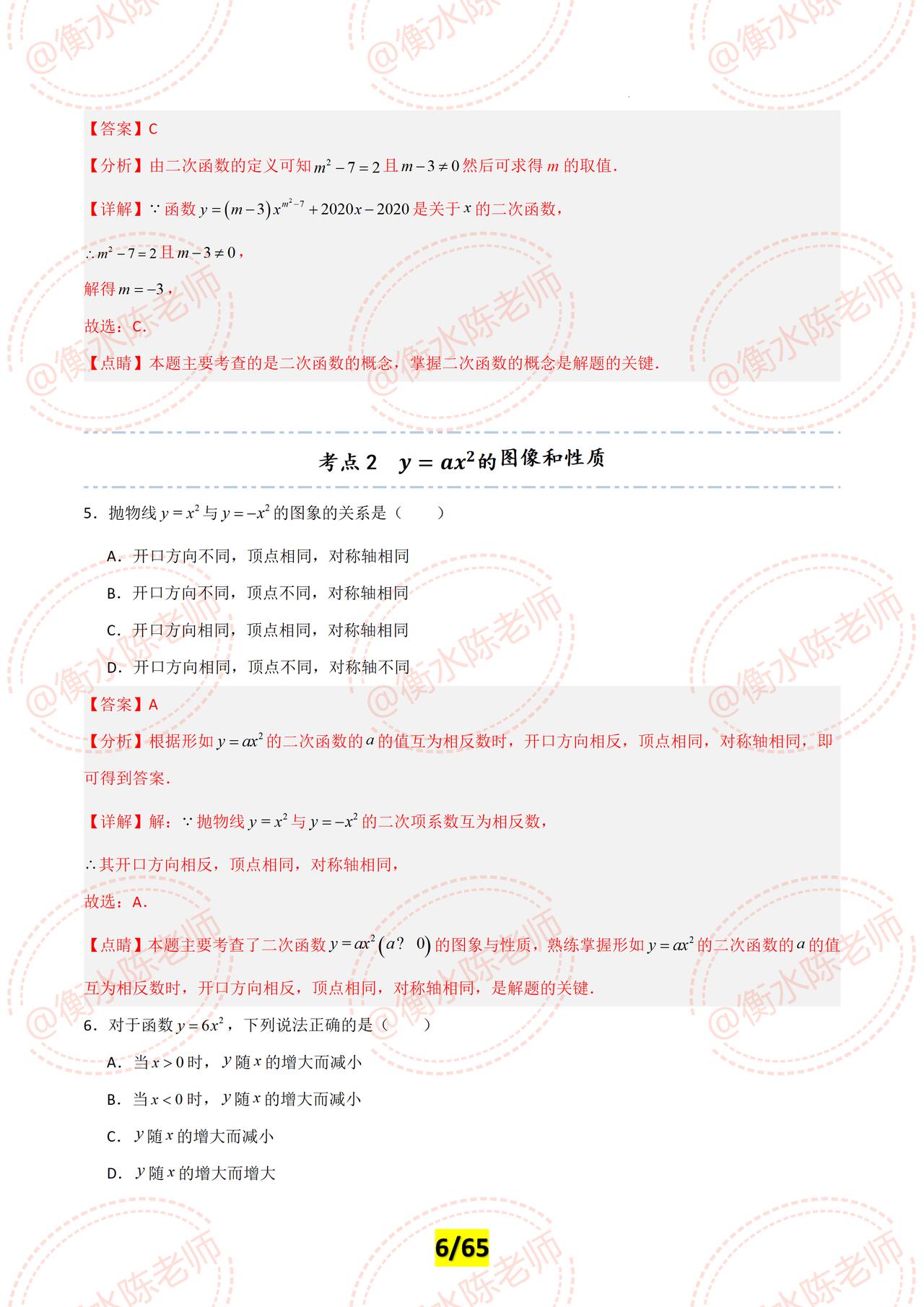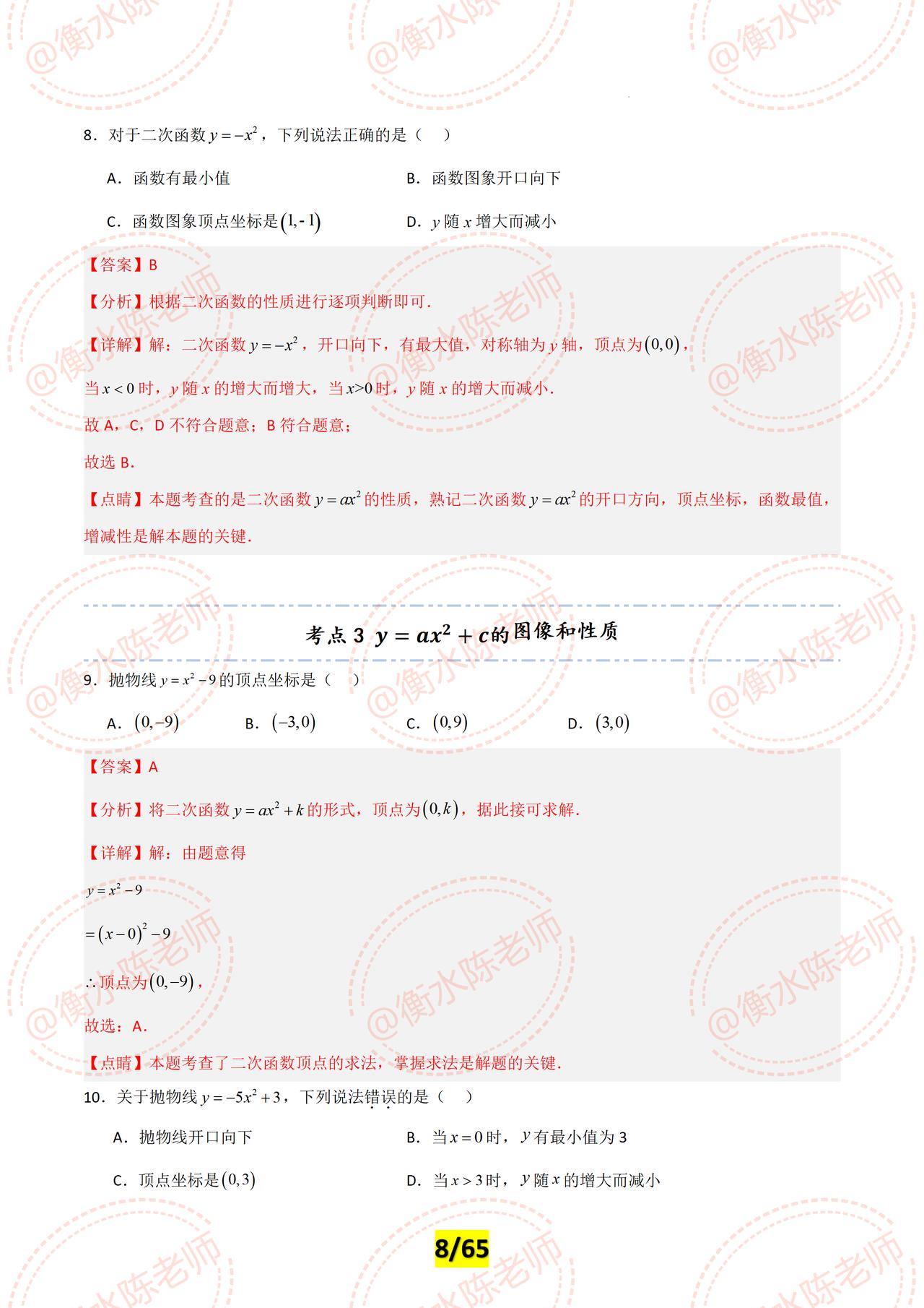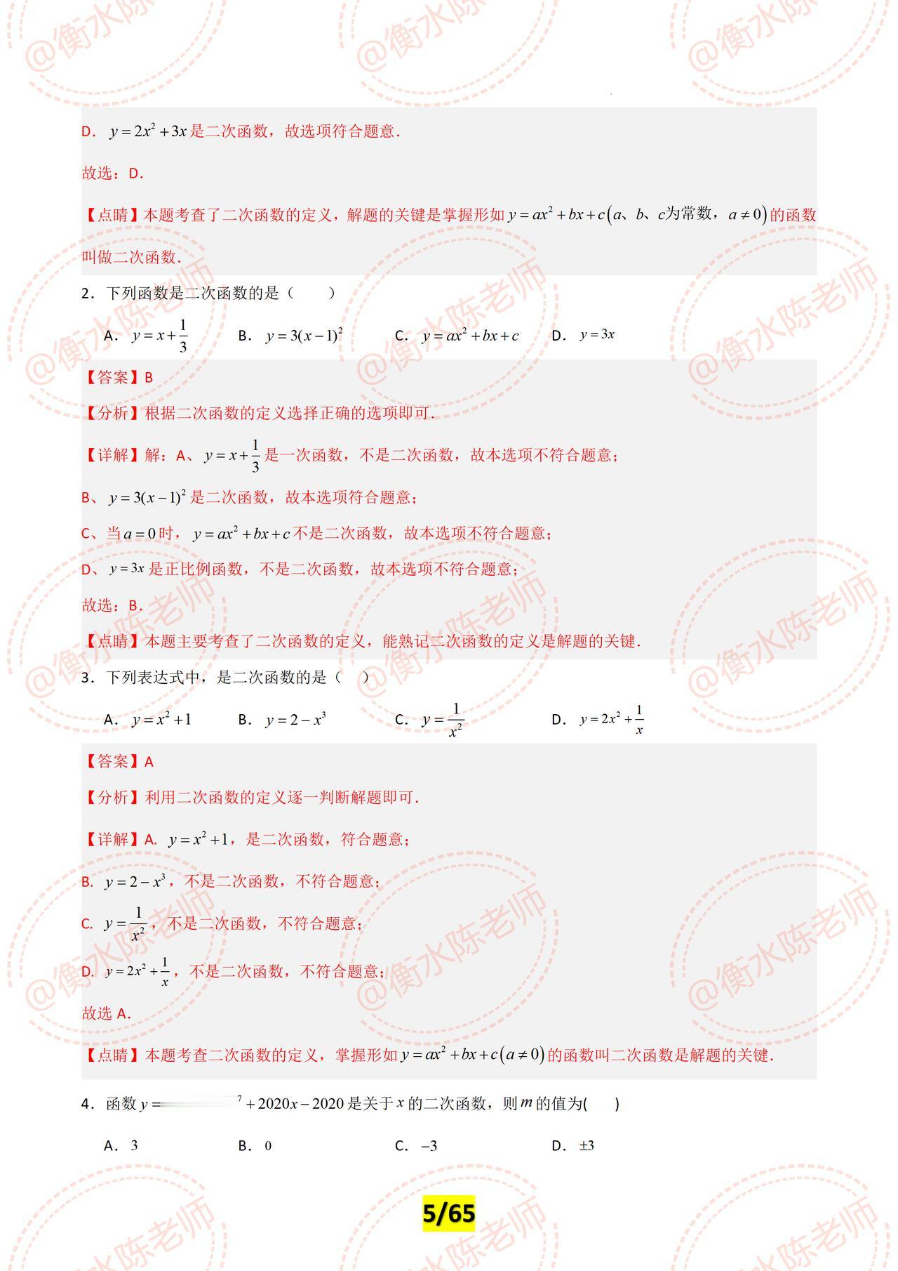 二次函数这个章节的内容,也是中考必考的内容,不仅分值占比高,难度上也大了一些,这部分没有学好的,老师把解题、提分方面的技巧和思路发给同学们,掌握这套方法,任何题型不用怕,分数白白送给你哦,这方面资料属于2024中考专题,内容比较多,只能发给大家一部分哦,需要全部资料的,记得和我沟通哦。
