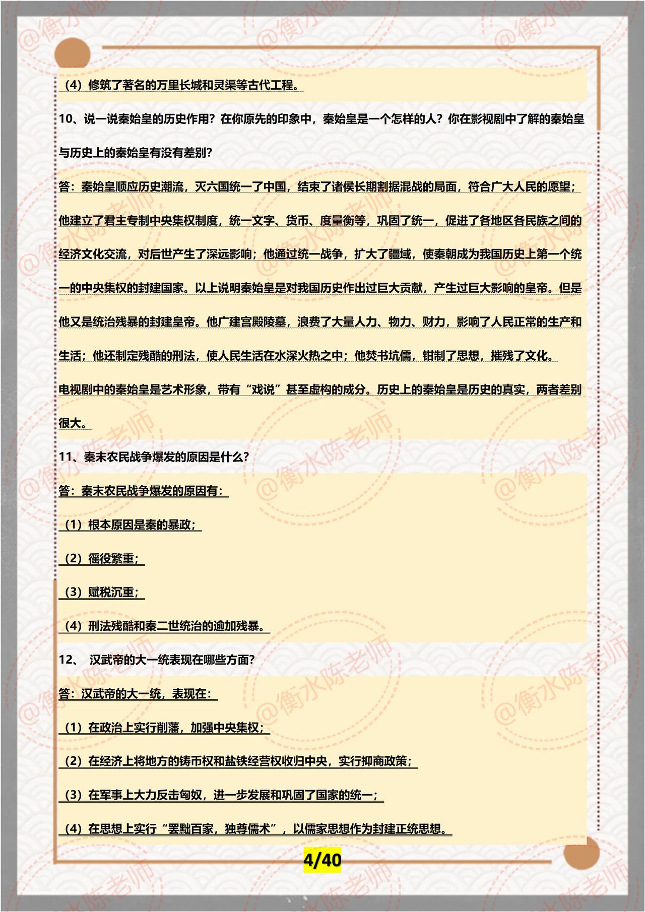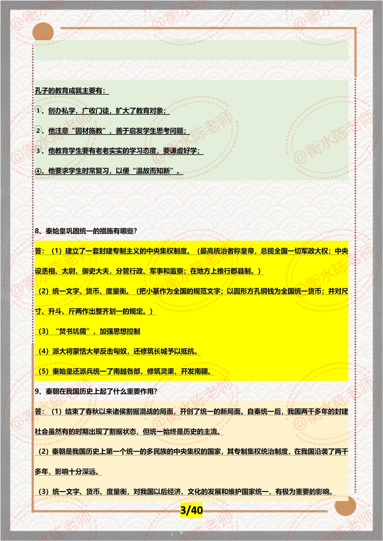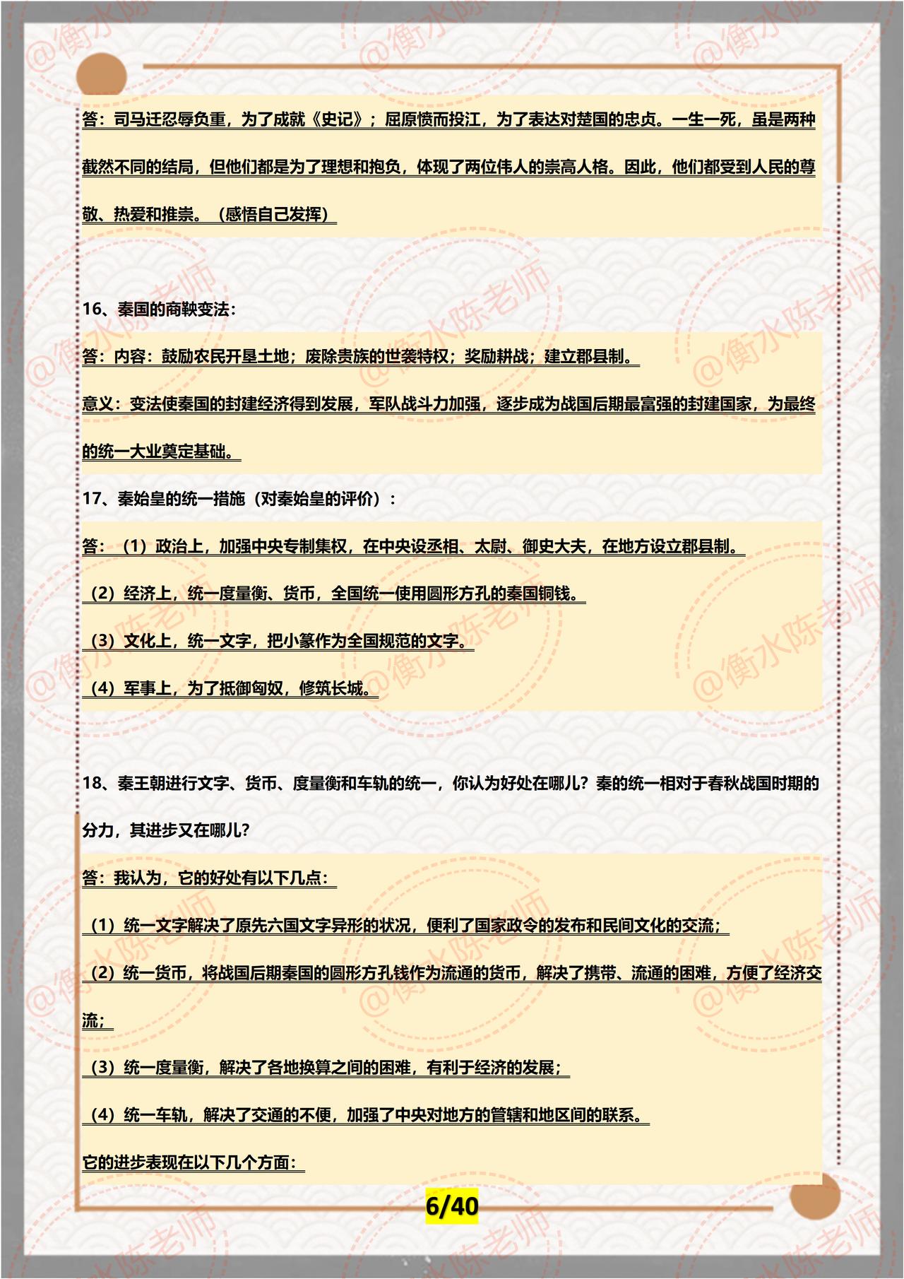 广东省深圳市一位学生家长联系我说,孩子这次月考历史考的比较差,升入初中以来,各科进度讲的比较快,孩子跟我说,历史有时候就是抓不住重点,考试的时候,大题写的满满的,就是不能获得高分,为了节省孩子学习时间,老师把七年级上册历史,每一课重点内容全部为大家编写的出来了,期中考试之前,好好背诵,背完这套资料,成绩和月考对比一下,让你信心倍增哦。 月考没有考试好的同学们,不要灰心丧气,通过检测找一下哪些内容还没有掌握清楚,做好笔记,重新复习一遍没有学好的,争取期中考试一鸣惊人。郑州外国语朱老师和几位朋友,按照不同的城市、学校,考试重点编写的七年级上册历史,期中考试重点发给大家,想要历史考到90以上,记得看自己城市对应的资料哦,想要获取的同学,记得找我哦。