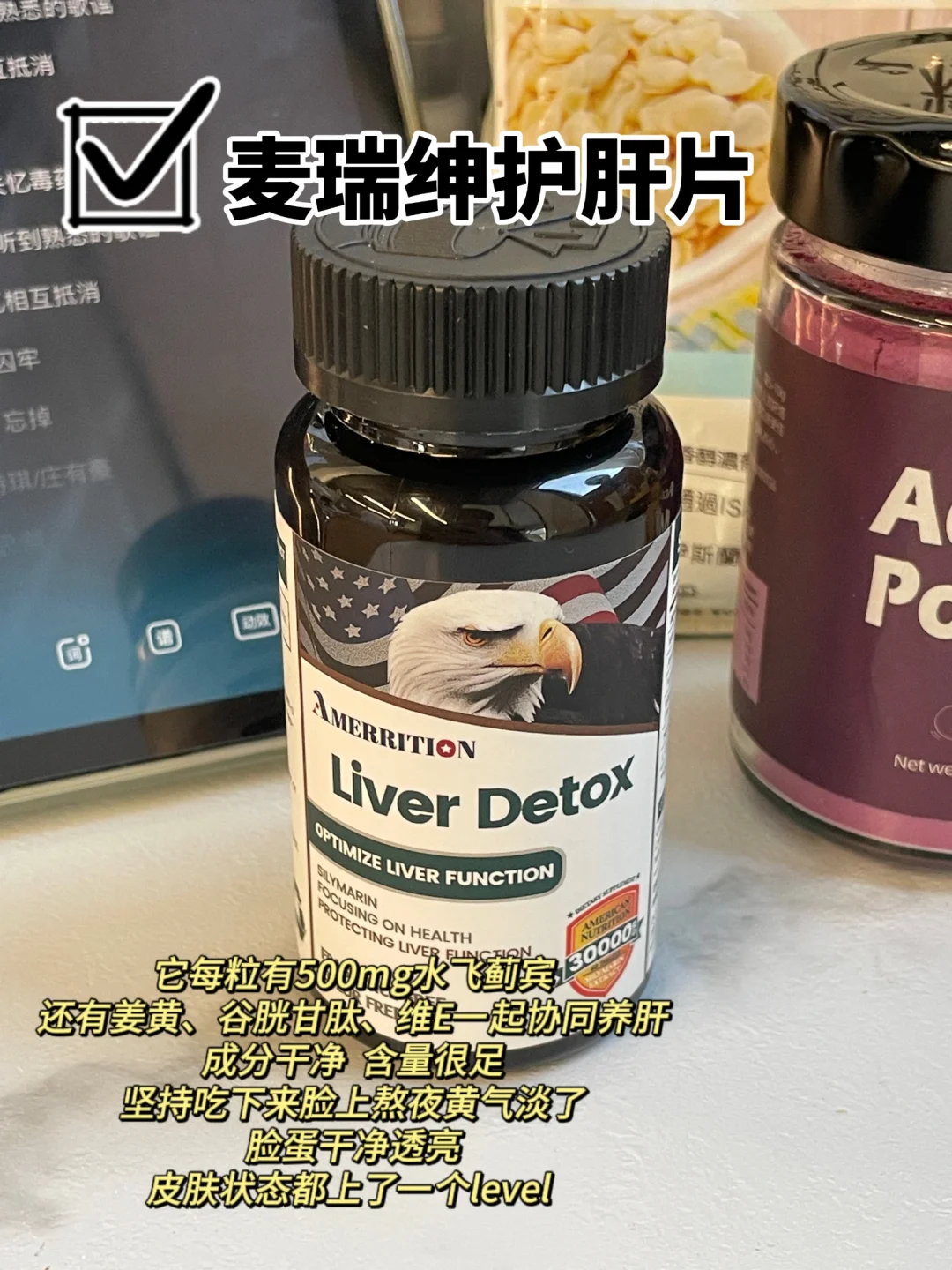 其次就是内调,之前仗着自己年纪小,天天熬夜追剧看小说,偶尔还小喝几杯+饮食不规律,时间久了就导致肝血不足,脸蛋黄突突的不说,还出油冒豆毛孔都粗了一圈,就连头发也掉了不少!毕竟养肝=养颜,女孩子肝不好真的颜值嗖嗖down,所以在日常生活中格外注重内调和食补这块。像回购比较多的就是这个麦瑞绅护肝片,淡淡的植物味倒不难闻,每粒有500mg水飞蓟宾含量很足,每天随餐一粒正好能满足日常的需求量,真的很适合我这样的懒人~还搭配了姜黄、朝鲜蓟这些协同养肝,成分含量也算是顶配了👍