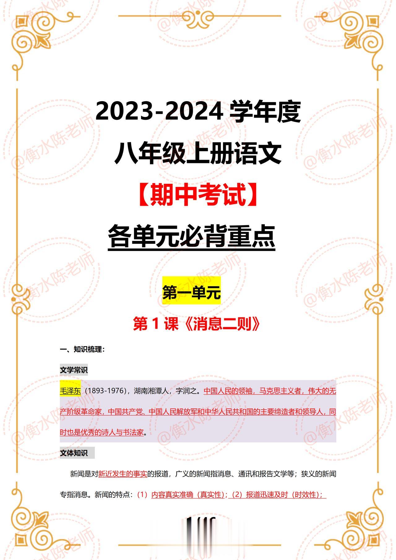 四川省成都市学生家长章女士联系我说,孩子前段时间的测试,物理成绩比之前提高了,非常感谢为孩子推荐的老师,十一期间联系我们,如果有空闲时间来四川做客游玩。 章女士的孩子,今年初三,初二下学期的时候,物理有些听不懂了,课堂上总是跑神,注意力不集中,越学越不想学,成绩下滑很厉害,跟孩子了解之后才知道,课堂上听不懂的时候,心情很烦躁,就不想听了,了解以后,给孩子制定了提升方案,从暑假开始,差不多2个多月的时间了,这次考试,已经考到70分以上了。 今天老师把北师大附属中学张老师,十几年的好朋友了,今天特意把八年级上学期语文期中考试,各单元复习重要知识点,按照不同的城市、版本、学校考试重点,编写的资料发给大家,期中考试想要考出好成绩,并且进入班级前三,记得看自己城市的期中考试资料哦,想要获取的同学,找我沟通一下吧。