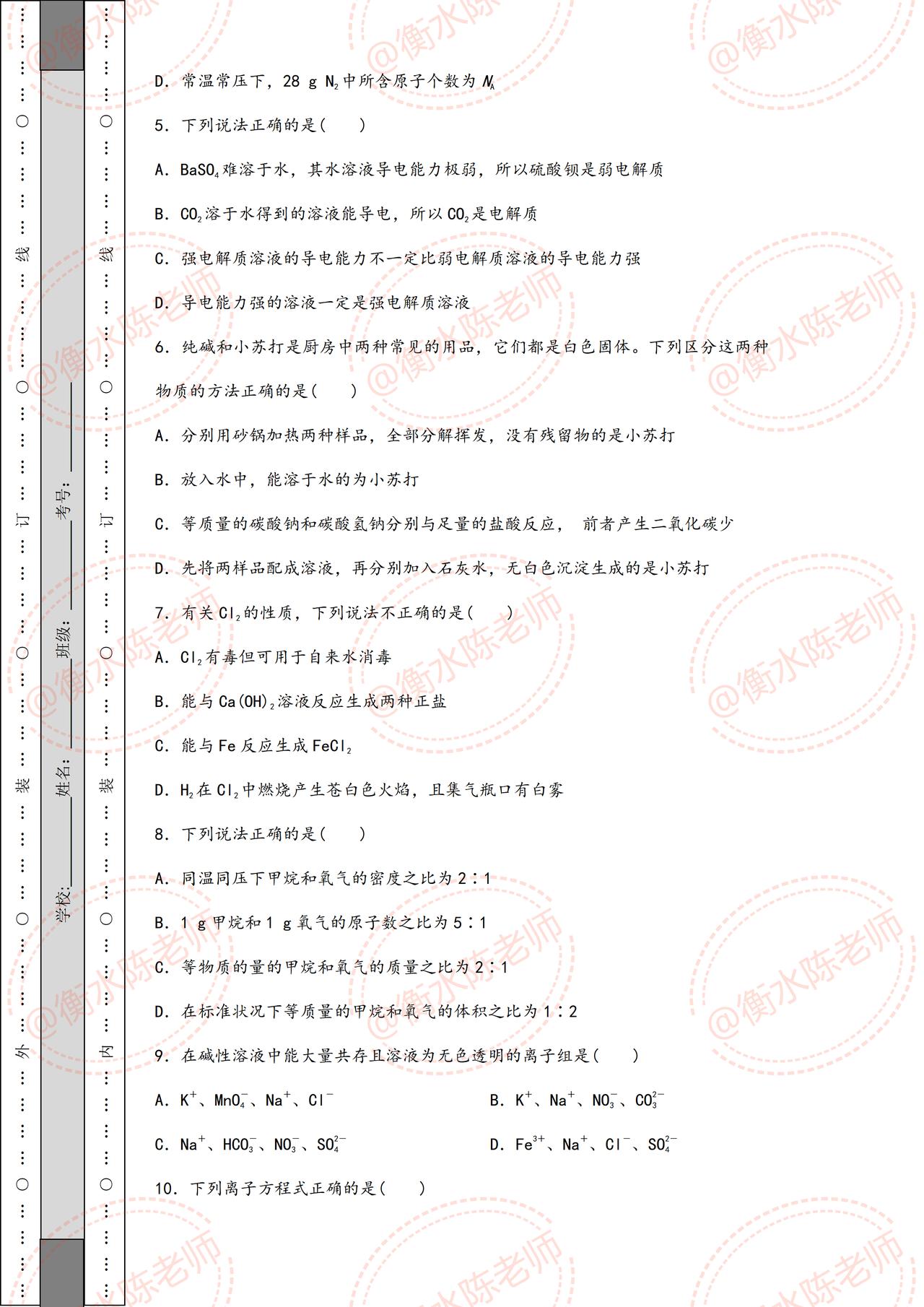 南京外国语学校蒋老师,我的好朋友,研究生时的校友,一直保持着联系,十一期间,在她家里见面聊过一次,当时看到她正在编写高中化学必修第一册期中考试卷,蒋老师跟我说,编写的期中考卷,差不多有1年了,根据不同的省份高考大纲编写的,已经快编写完毕了,到时间根据不同省份,考试重点,全部发给我一份,今天老师分享给大家一部分。 针对高一的学生来说,今年刚升入高中,学习压力比较大,化学成绩比较弱的考生,考试之前做一遍自己城市相对应的期中考试卷,这样的考题把握比较精准哦,想要获取的考生,记得和我聊一聊哦。