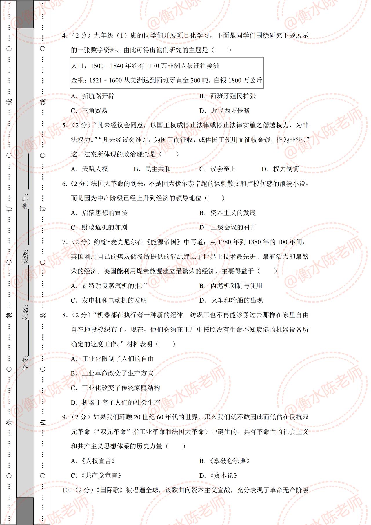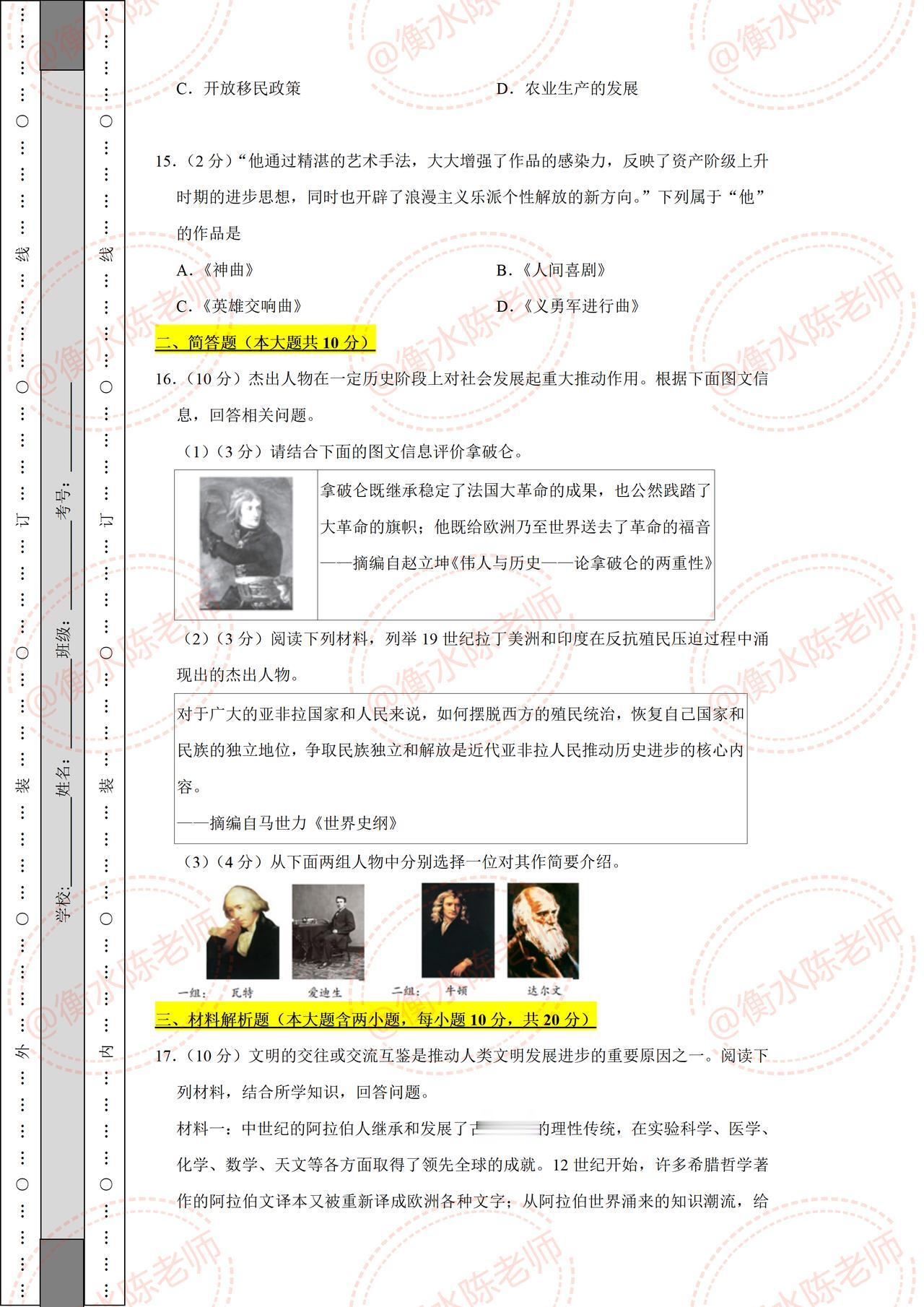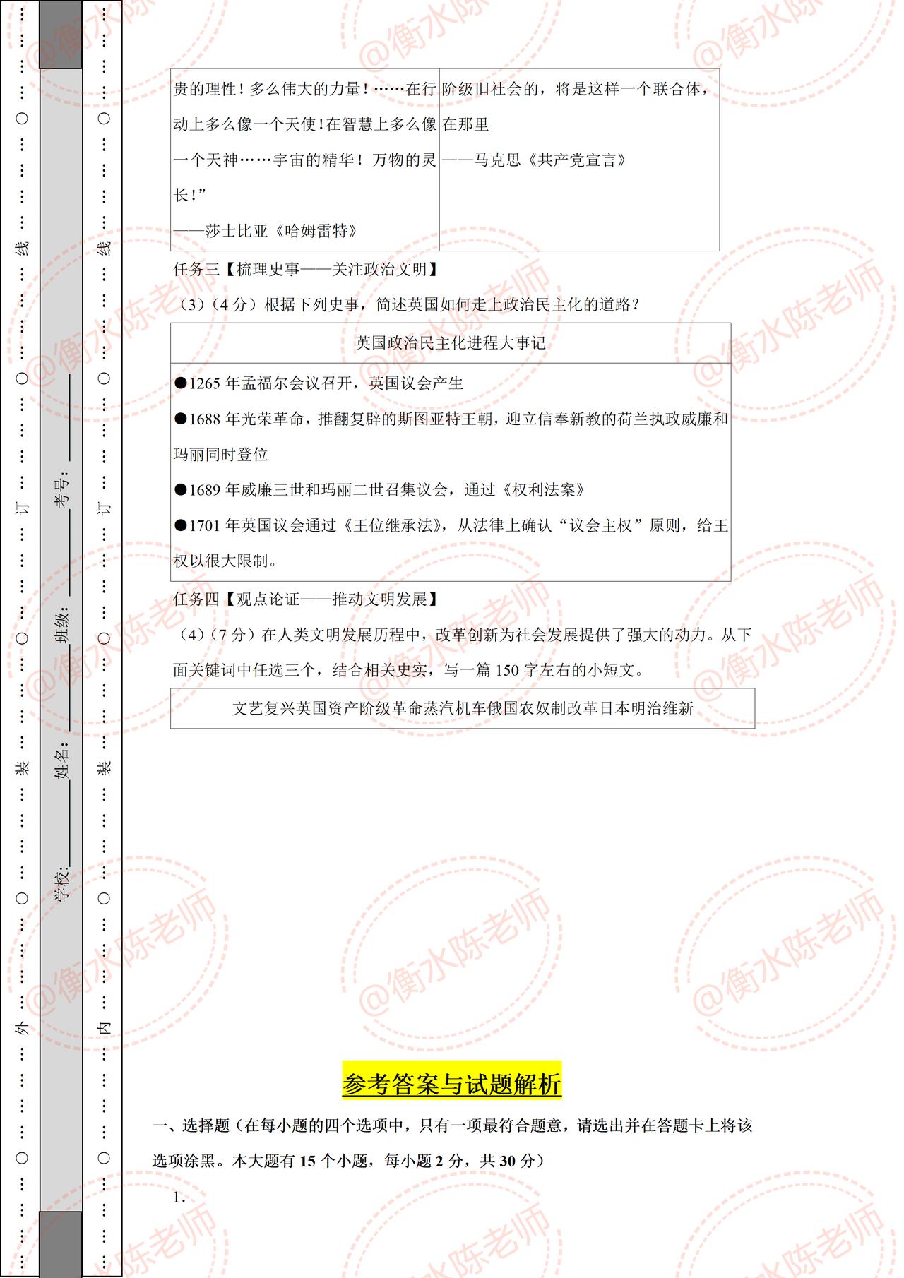 九年级上学期历史,根据不同城市、学校,考试大纲,常考题型,编写的期中考试重点考题,历史成绩比较差,总分总分拉后腿的考生,提前熟悉一下期中考试题型,做好查漏补缺。 考生在期中考试之前,先要做一遍自己城市对应的期中考试卷,这样的名师出的考题,比较熟悉当地城市考情,把握性更加精准,考题都是当地名师出的,让你考试中少走更多的弯路,多挣考试分数哦,想好获取的同学,赶紧和我商量、沟通一次吧!