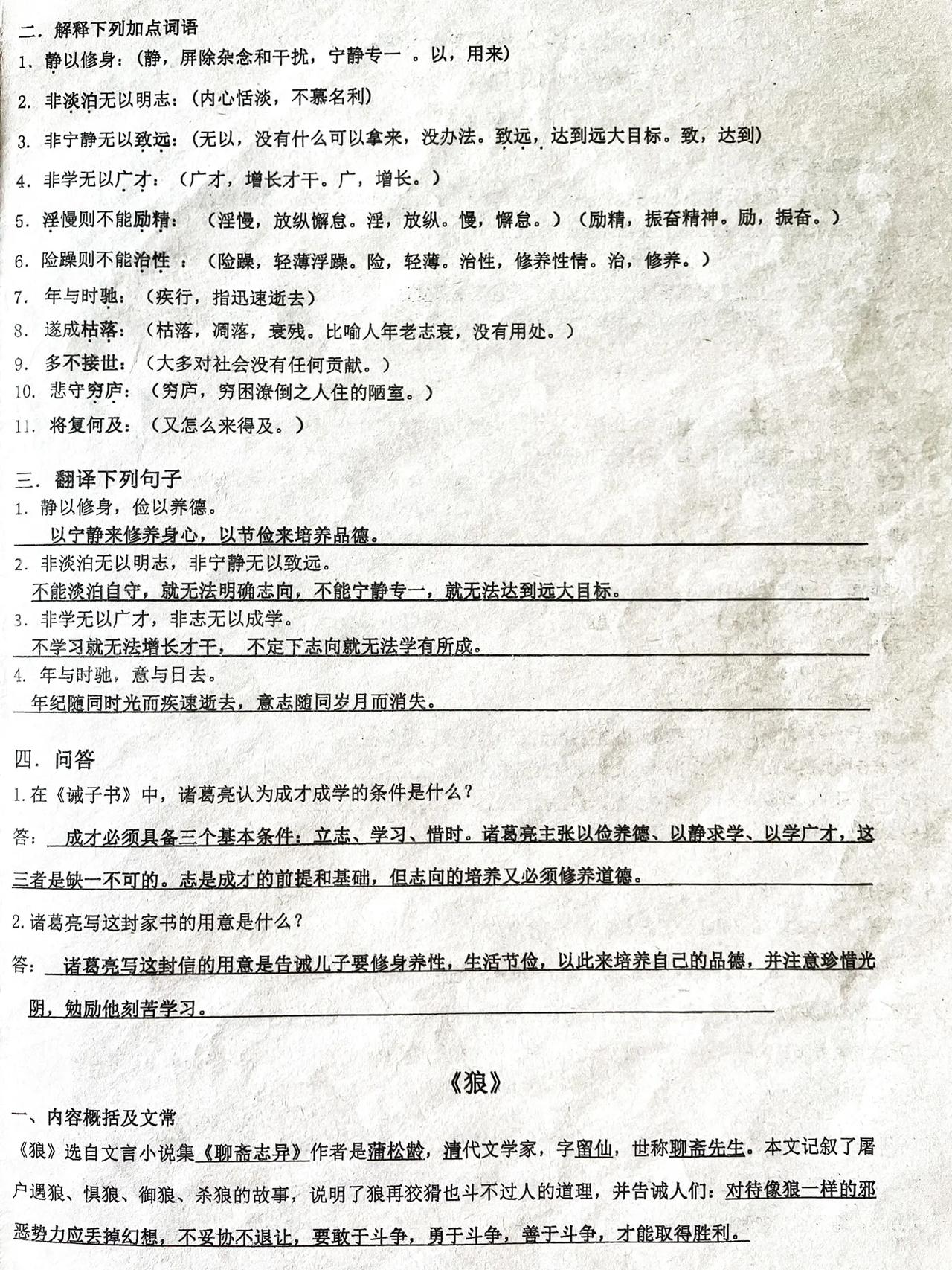 七年级上学期语文期中考试【文言文】必背重点,常考必出,热点考题,全部分享给大家,期中考试之前,认真吃透这份资料,考试中不再让你扣分,甚至1分也不失去哦,考试分数提前送给大家,每天认真背一下,然后在默写一遍,分数很快就到手哦!