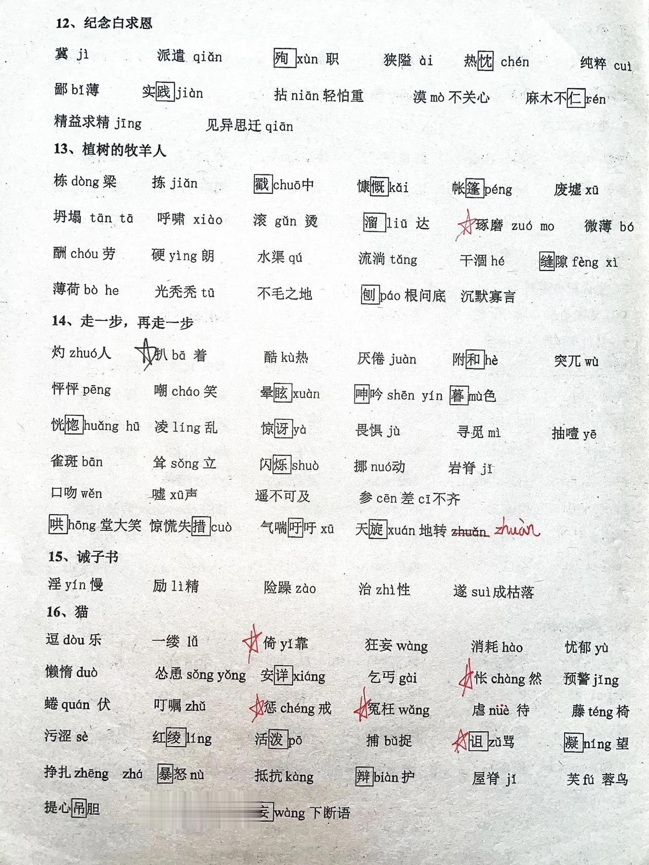 七年级上学期语文,期中考试想要考到班级前三,95分以上,跟着老师的节奏复习,让你少走很多弯路,老师在期中考试之前,会把所有考到的内容,全部分享给大家。 今天老师把七年级上学期语文期中考试,试卷中经常出错的,常考的【字音+字形】热点考题,提前发给同学们复习一遍,希望同学们考试中,这样的错误不要再出错喽,赶紧保存打印出来吧!