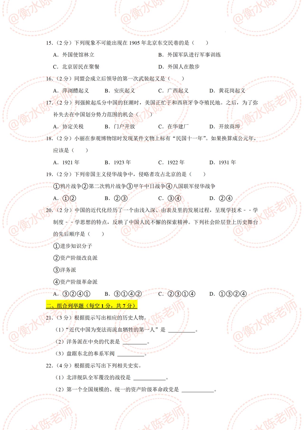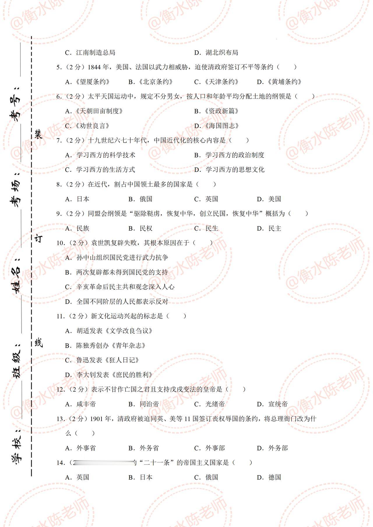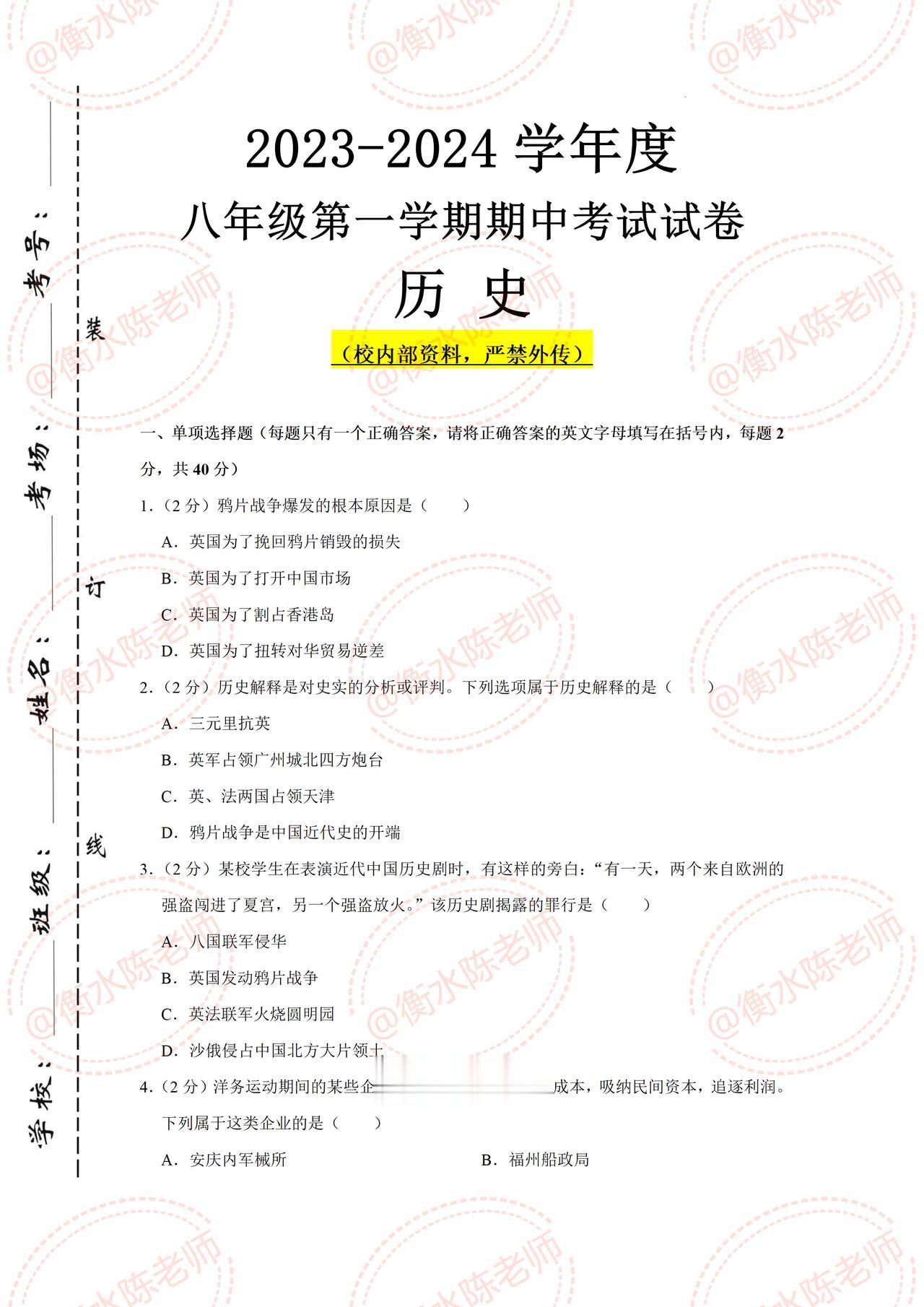 八年级上册历史,第一学期【期中考试】,试卷必出重点考卷,期中试卷根据不同城市、学校编写的,期中考试前,记得做一下自己城市对应编写的期中卷哦,想要获得好成绩,进入班级前三,记得和我沟通聊一下,学习上让你少走很多弯路,考试中让你多考分数哦。