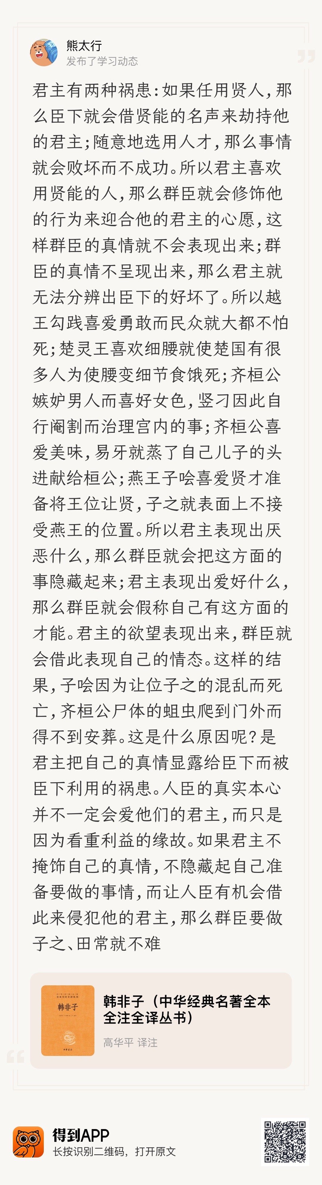 他不知道韩非还有一句:赏赐和刑罚都不能交给臣下,不然你就死定了。