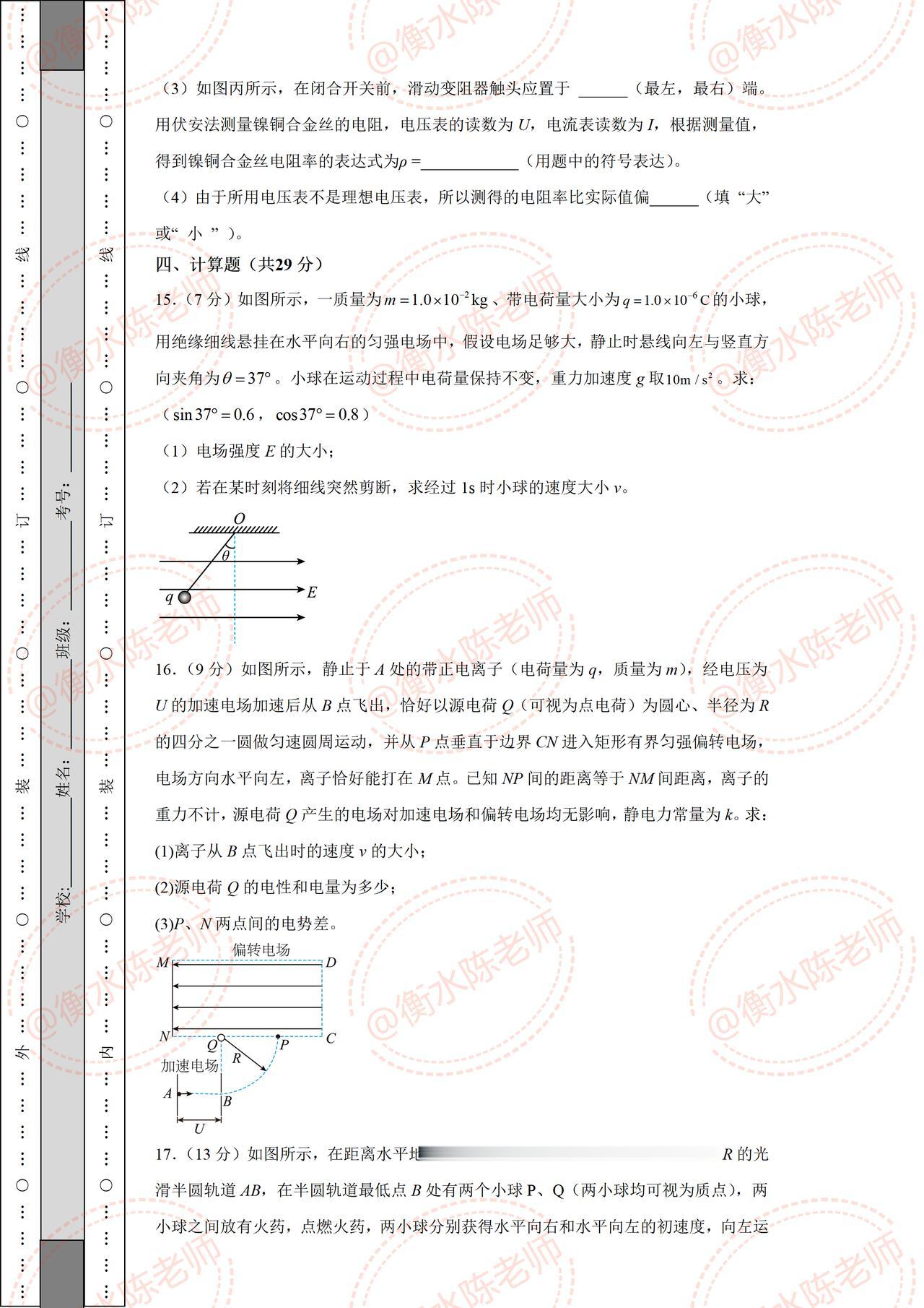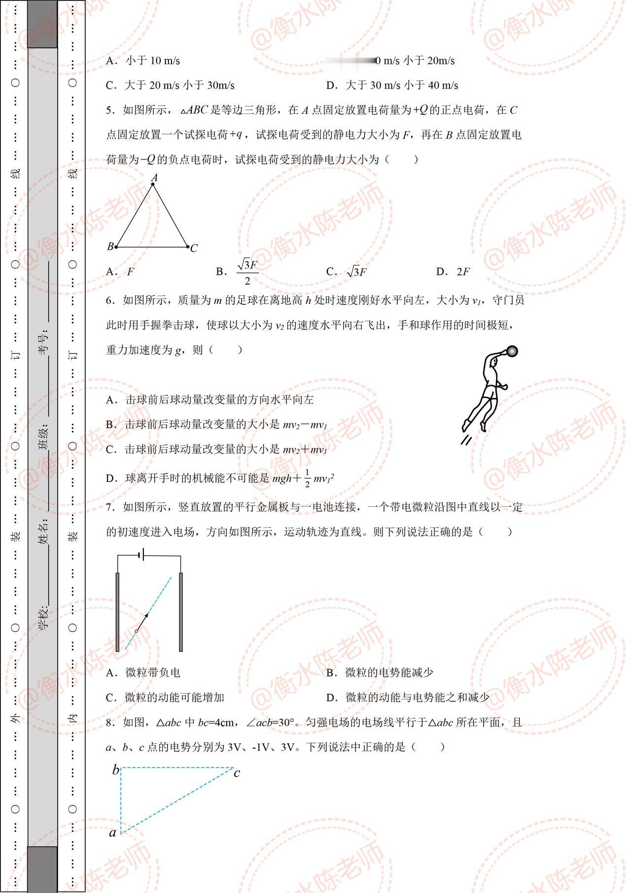 高中2年级,第一学期期中考试物理重点必出考卷,是根据不同的省份,学校编写的,物理成绩差的,考试之前认真做一遍,是做自己对应城市的期中试卷哦,想要获取的考生,记得和我沟通哦。