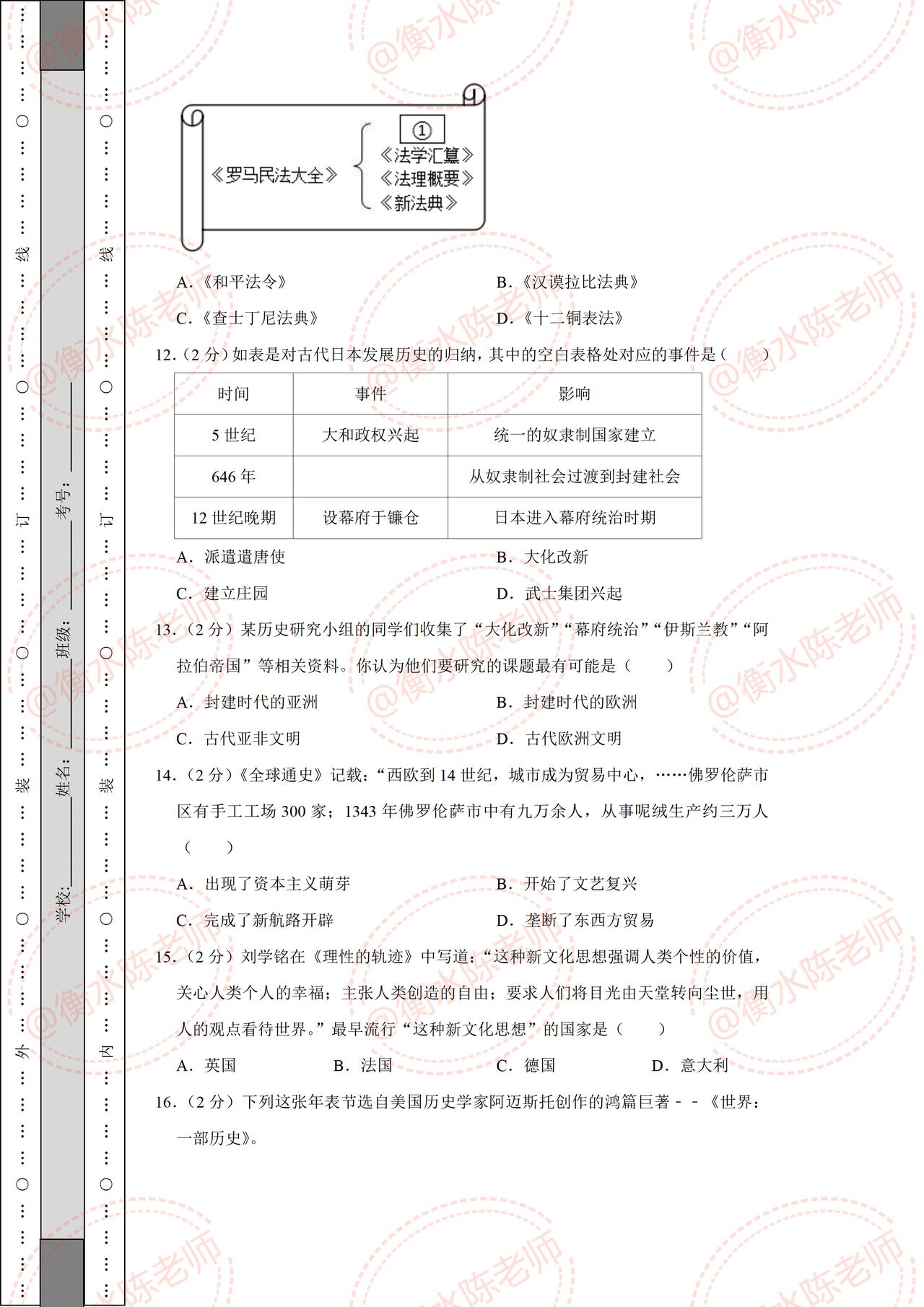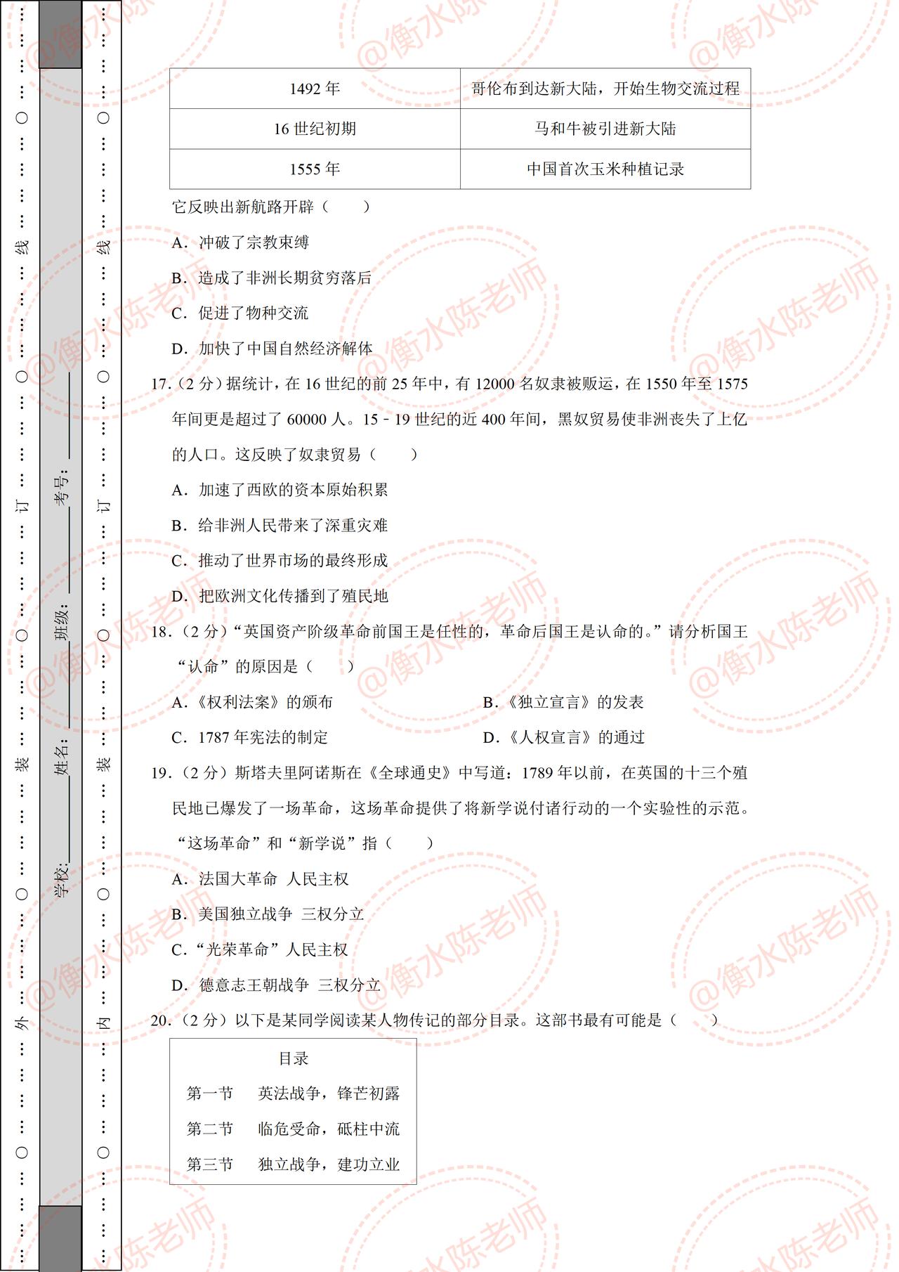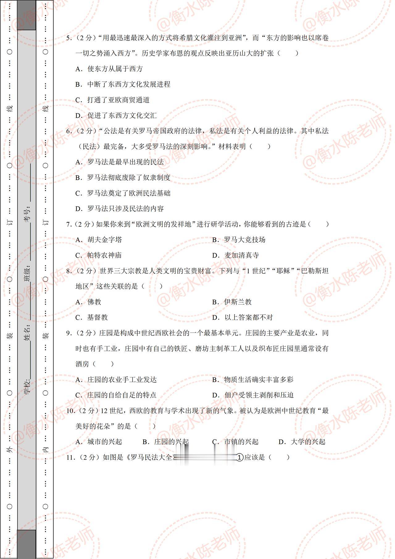 九年级上学期历史,期中考试常考重点试卷,提前发给同学们练习一遍,都是考试中出现频次比较多的题型,想要历史获得好成绩,考试之前,一定要做一遍自己城市对应的期中试卷哦,想要获取的考生,记得和我沟通交流一下哦。
