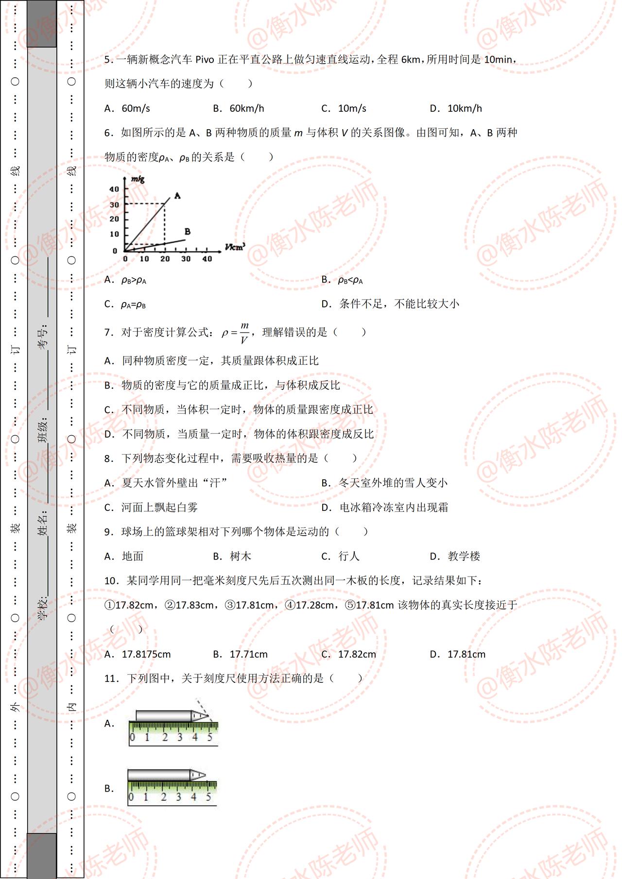 八年级上学期物理,第一学期期中考试重点测试卷,成绩比较差的学生,提前做一遍,根据自己城市编写的期中卷,让你考试中少走很多弯路,多考很多分数哦,想要获取的,和我沟通交流一下哦。