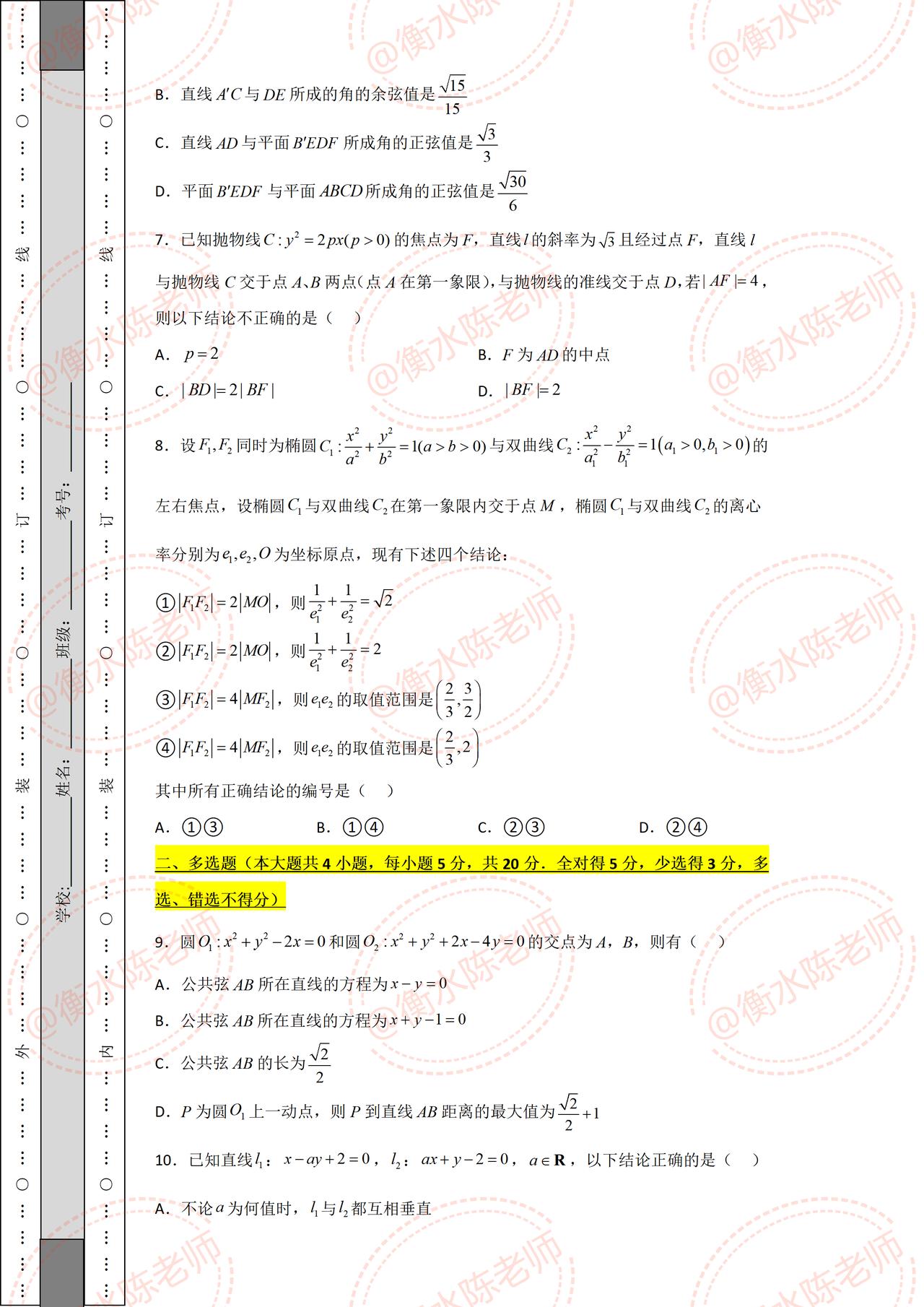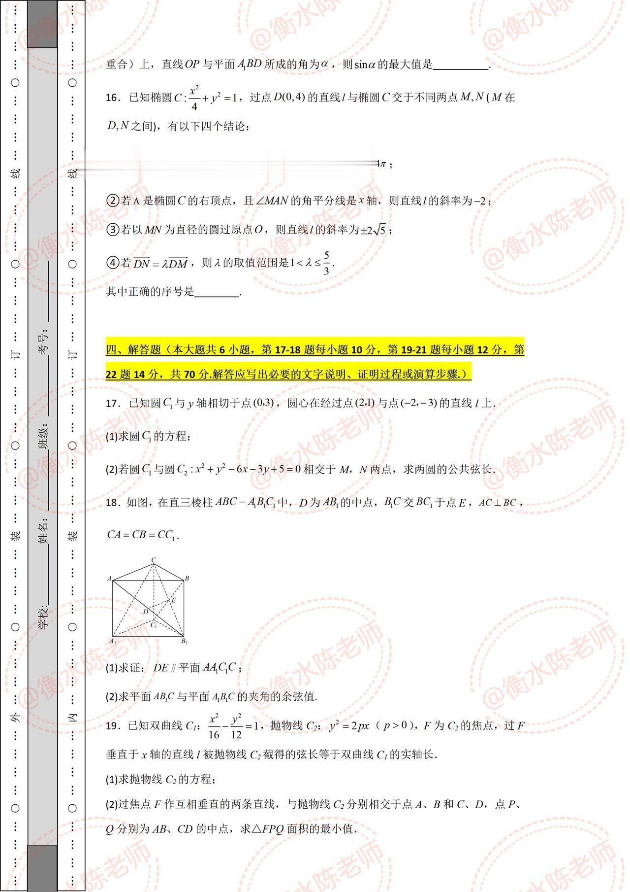 高二上学期数学,期中考试重点考题,是根据不同的省份、对应版本编写的期中考试题,数学成绩差,期中考试要想获得好成绩,提前做一遍自己城市对应期中试卷哦,想要获取的考生,记得和我沟通一下哦。