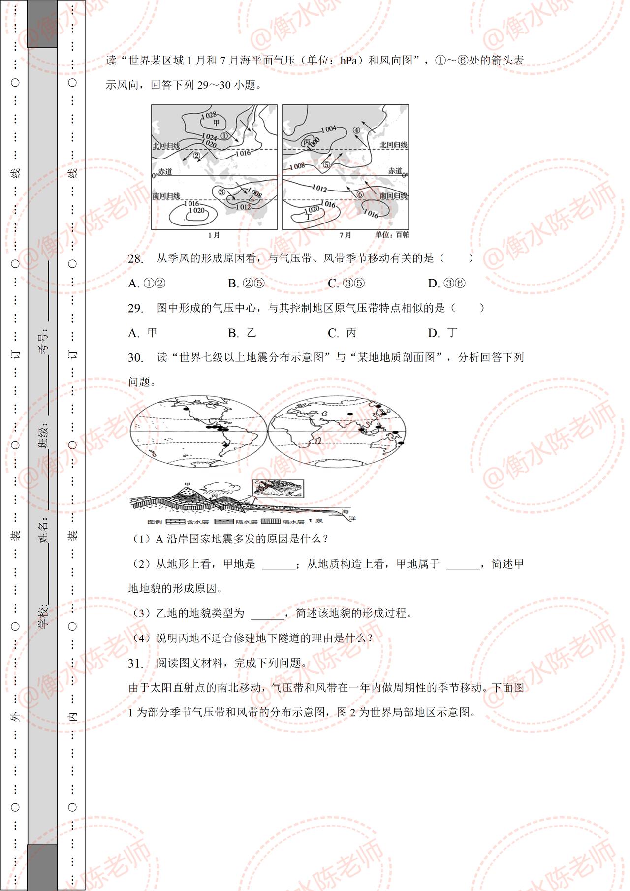 高中2年级,第一学期地理期中考试重点题型发给大家,期中考题是根据不同的省份、版本,高考大纲,编写的2023全新【期中试卷】,地理成绩差,月考又没有考试好的,不要灰心丧气,这次期中考试,把分数争取出来,临考之前,一定要做一遍自己城市对应期中卷哦,想要获取的考生,赶紧和我沟通哦。