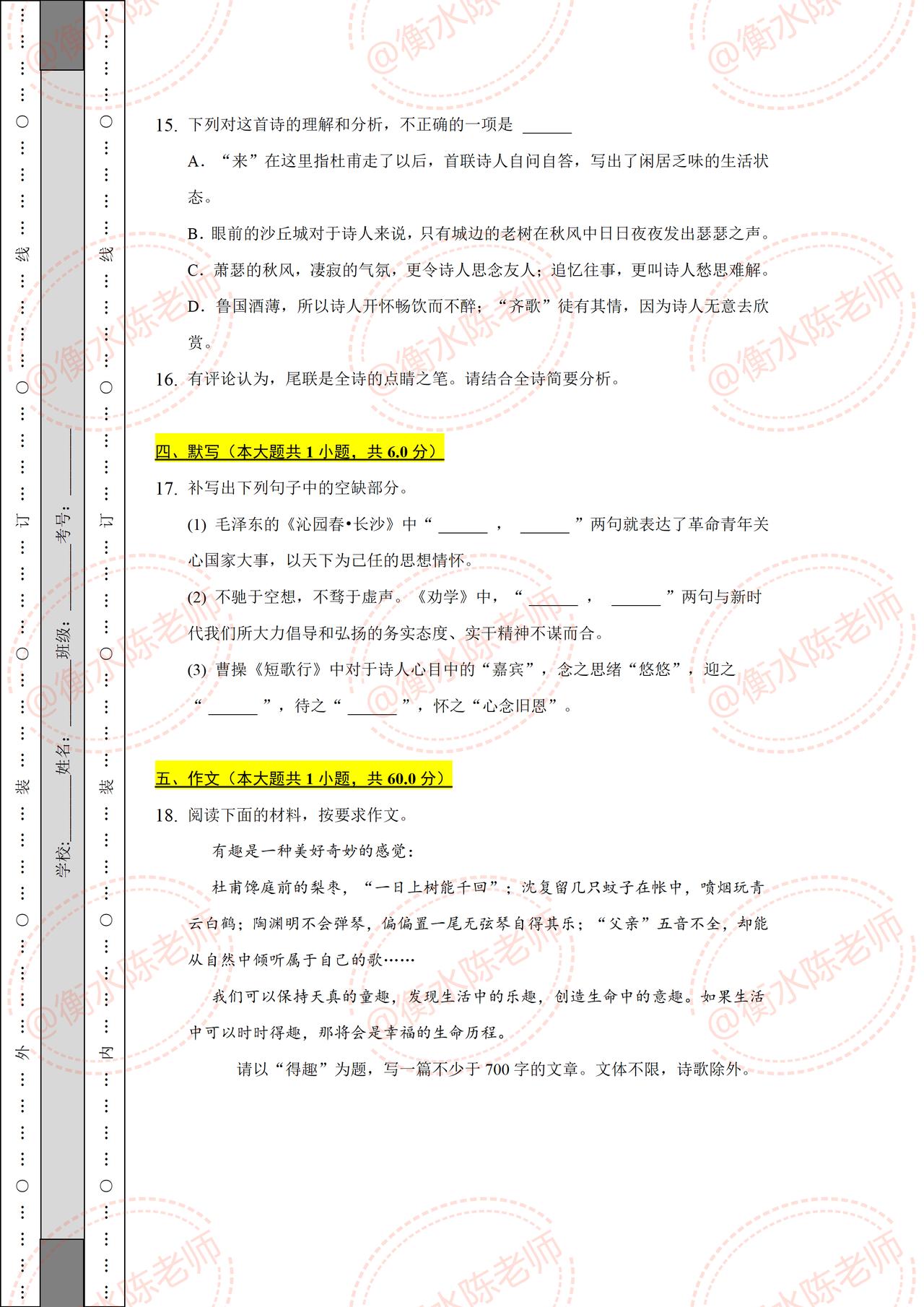 高一语文上册,第一学期【期中考试】重点考题,是根据不同的省份、对应版本,高考大纲编写的,语文成绩比较弱,底子差,月考不是很理想的考生,期中考试之前,一定要做一遍自己城市对应的期中试卷哦,让你考试少走很多弯路哦,想要获取的,和我沟通一下哦。