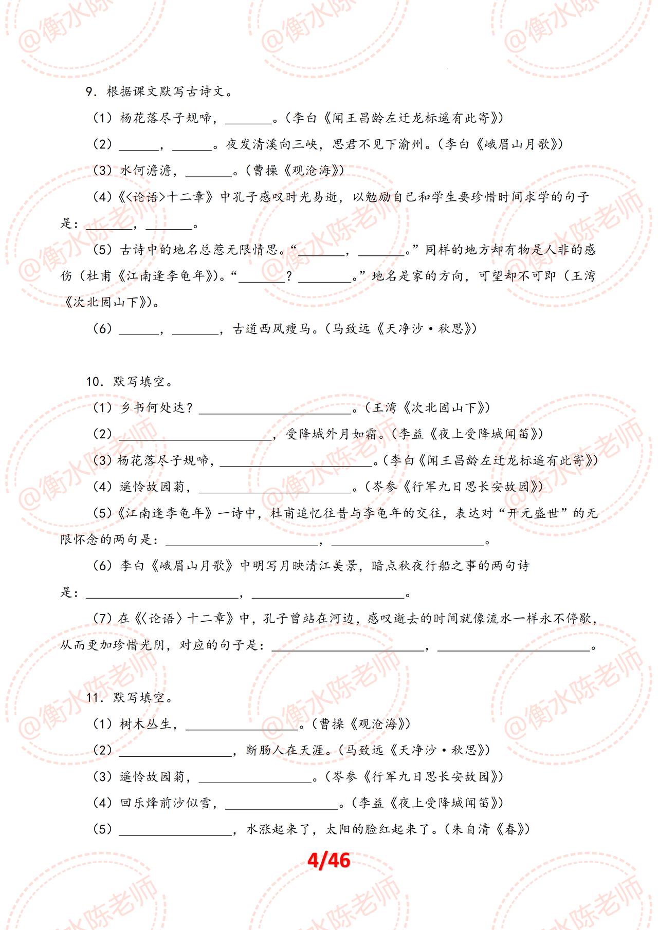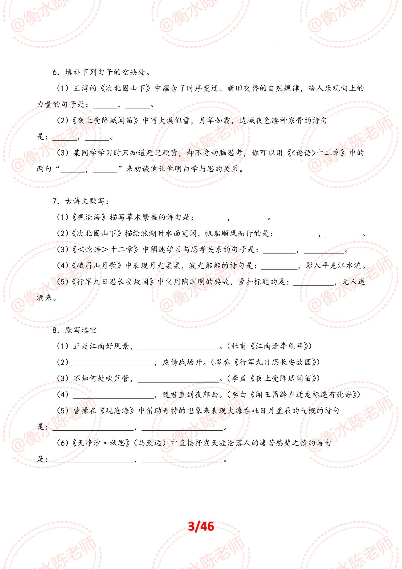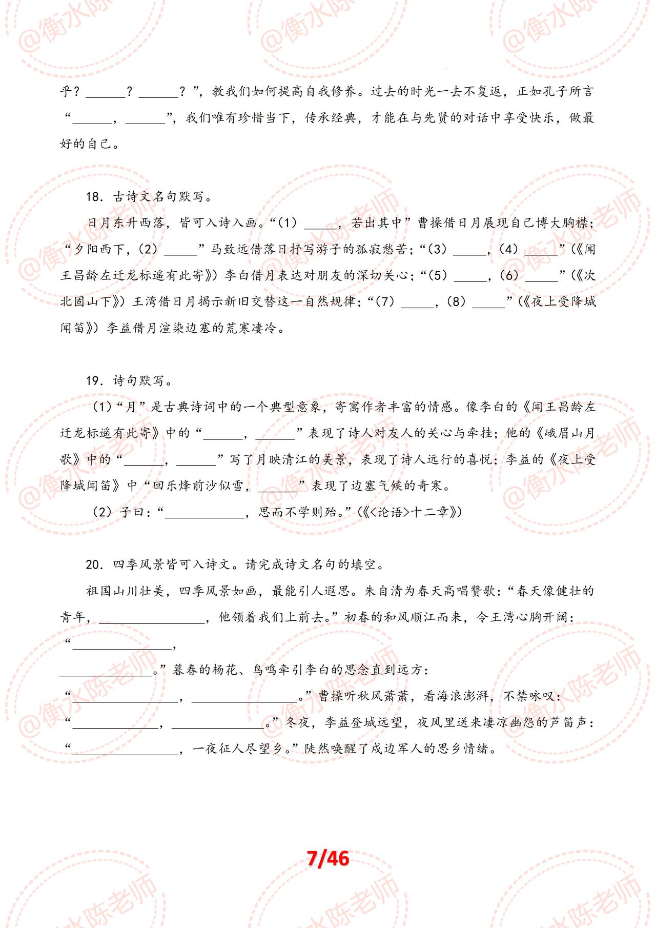 七年级上学期古诗文默写,期中考试最容易考到的题型,第一时间发给同学们,考题都是近3年出现次数最多的考题,提前把试卷中考到的,发给大家,分数在这里了,要不要,您来决定吧。