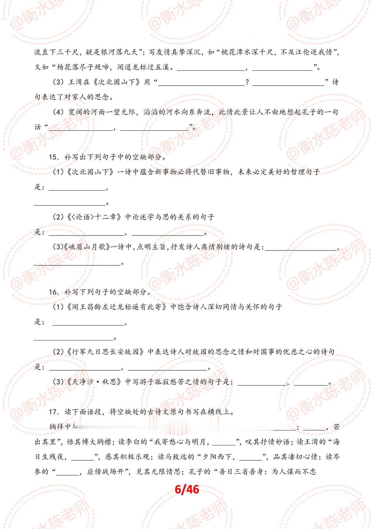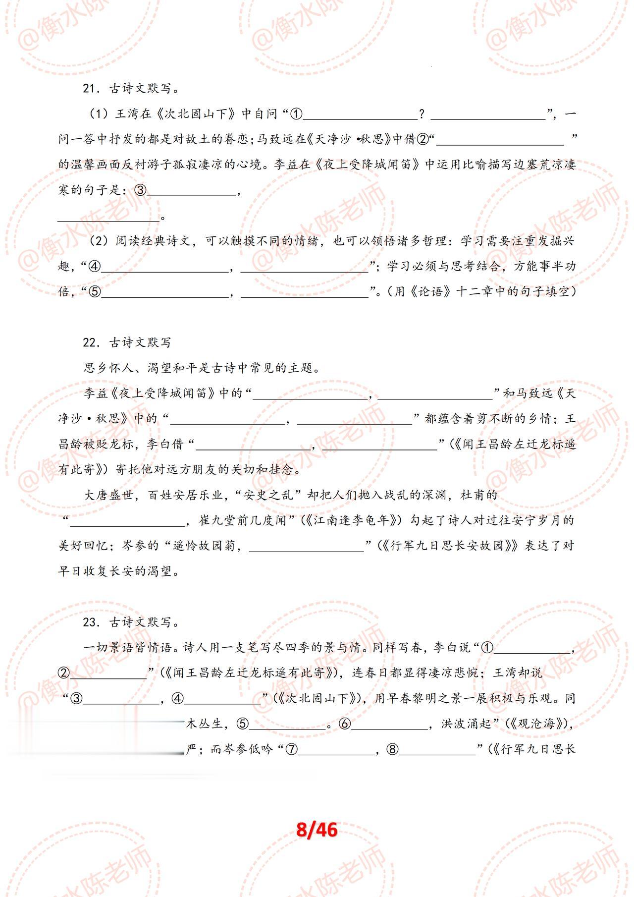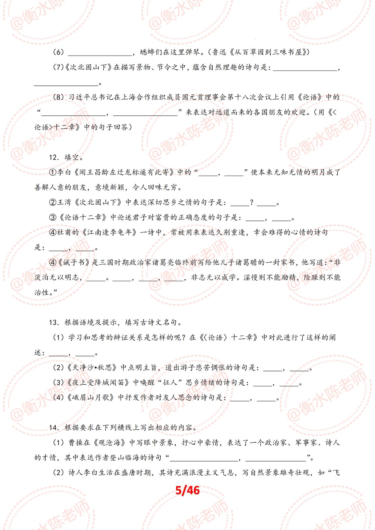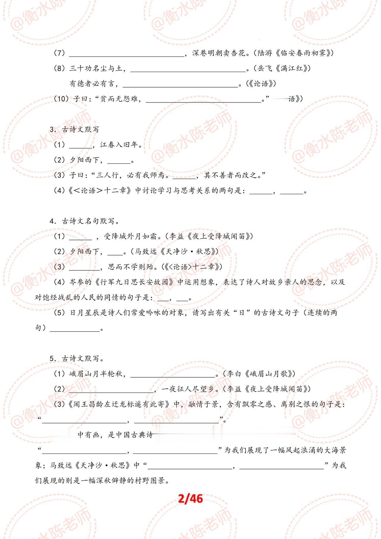 七年级上学期古诗文默写,期中考试最容易考到的题型,第一时间发给同学们,考题都是近3年出现次数最多的考题,提前把试卷中考到的,发给大家,分数在这里了,要不要,您来决定吧。