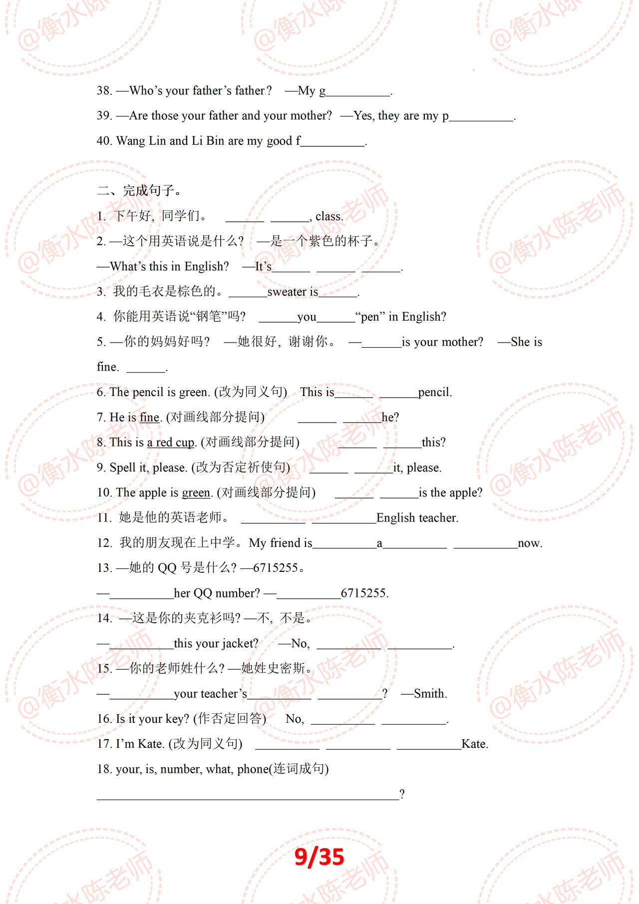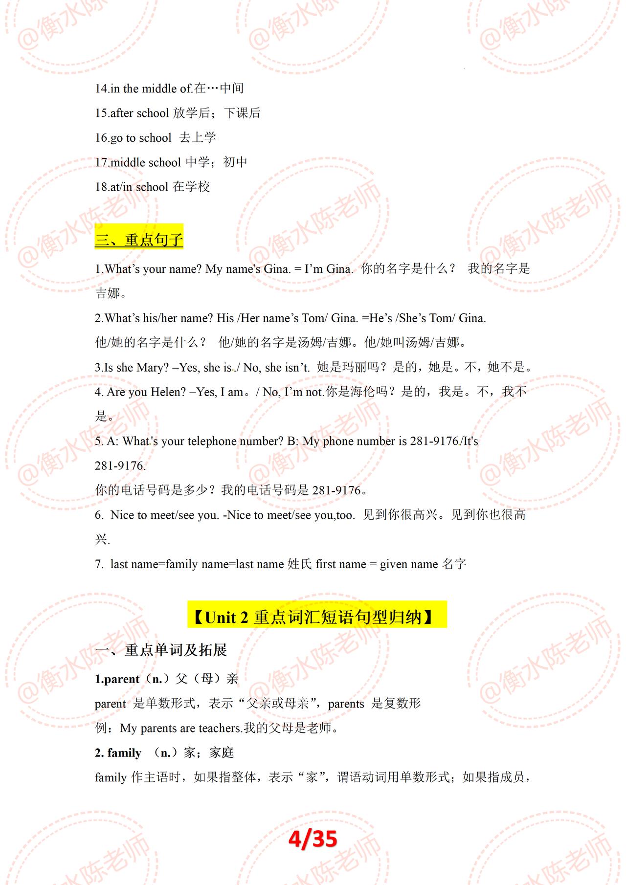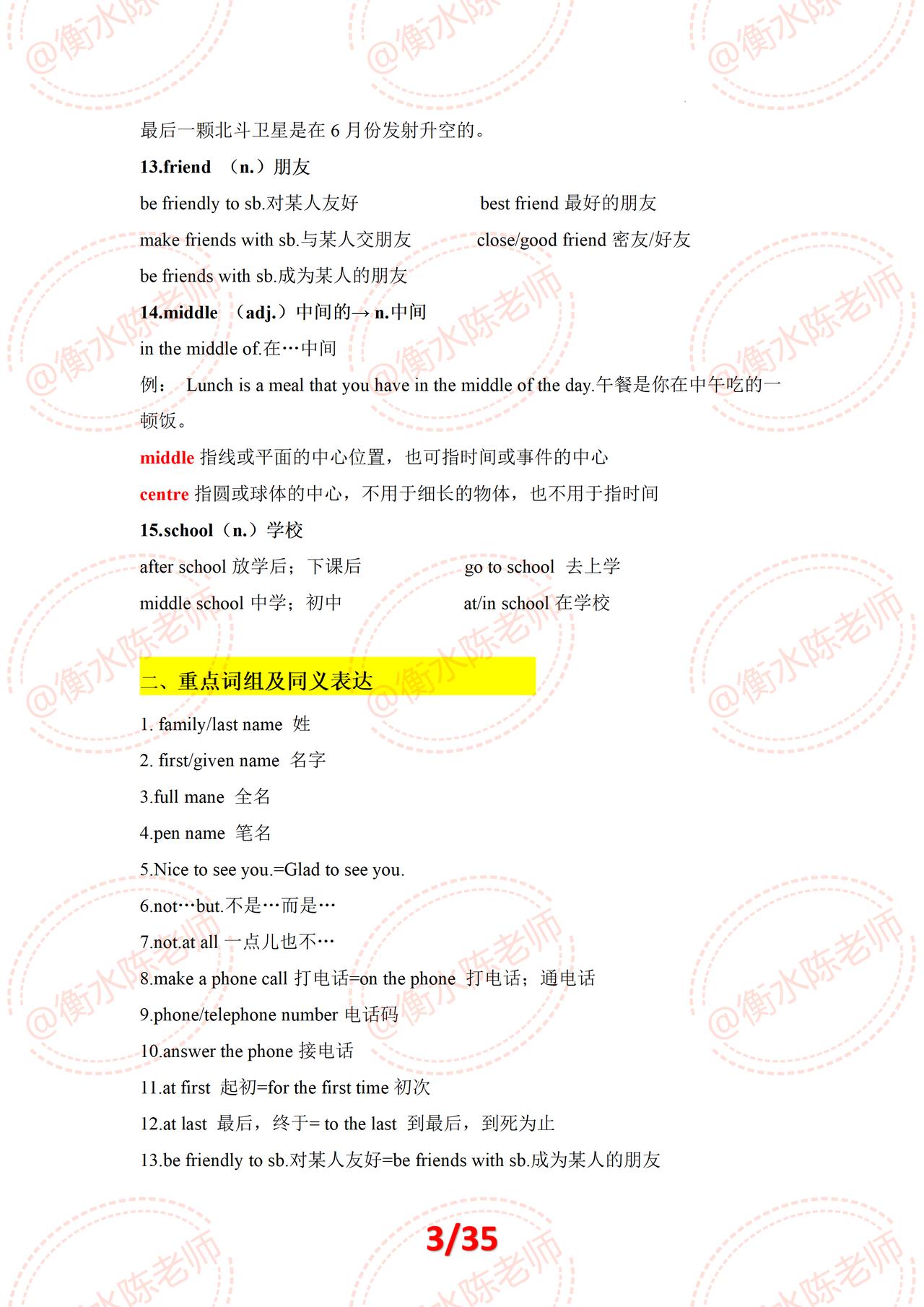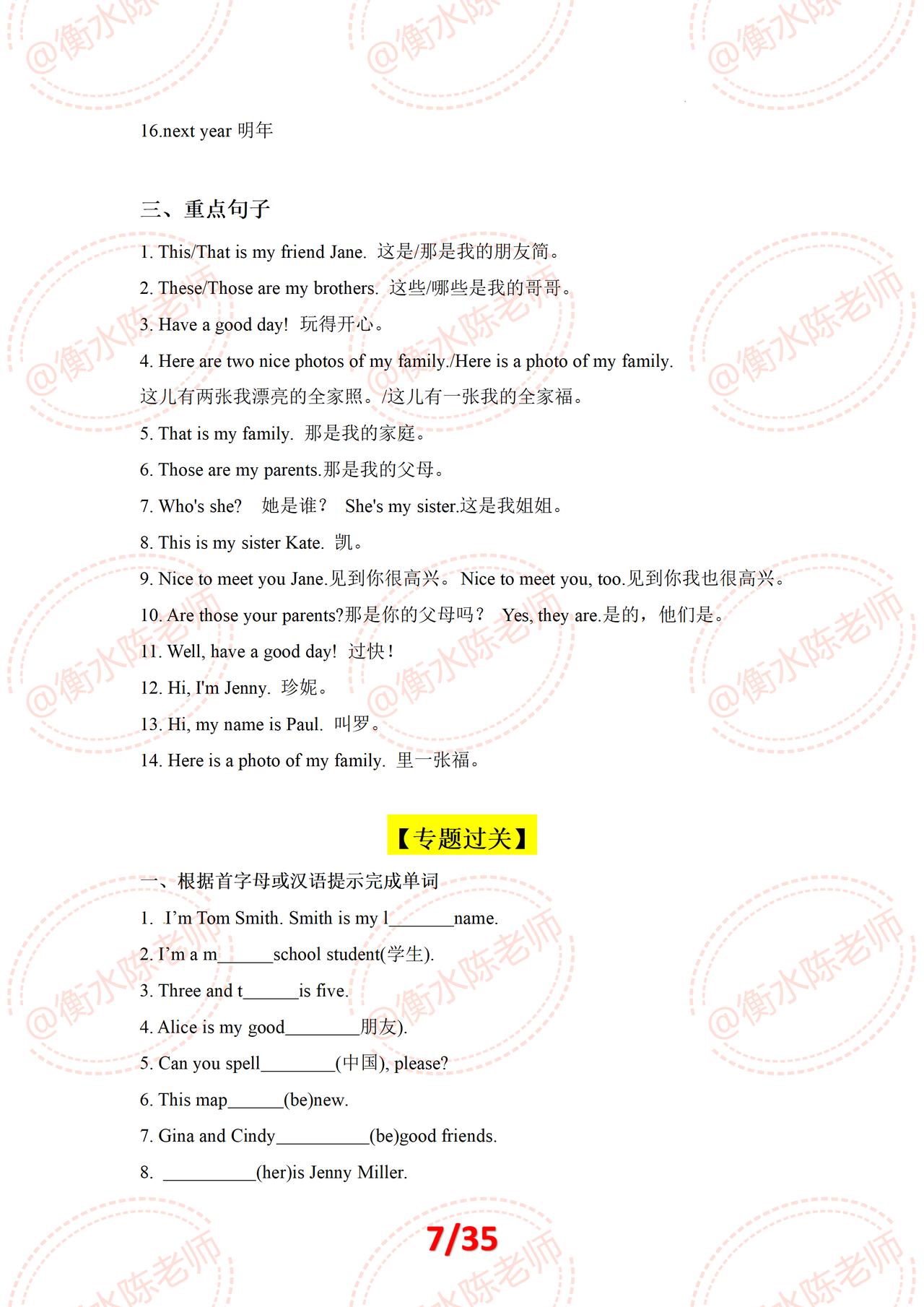 七年级上学期英语,根据不同城市、版本,学校考试重点编写的,期中复习重点,老师把七年级上学期英语,前三个单元的【重点词汇】+【短语句型归纳】+【热点专题过关】,只要考到的内容全部毫无保留的分享给大家,由于资料内容比较多,只能发布一部分,需要全部的考生, 和我沟通一下哦。