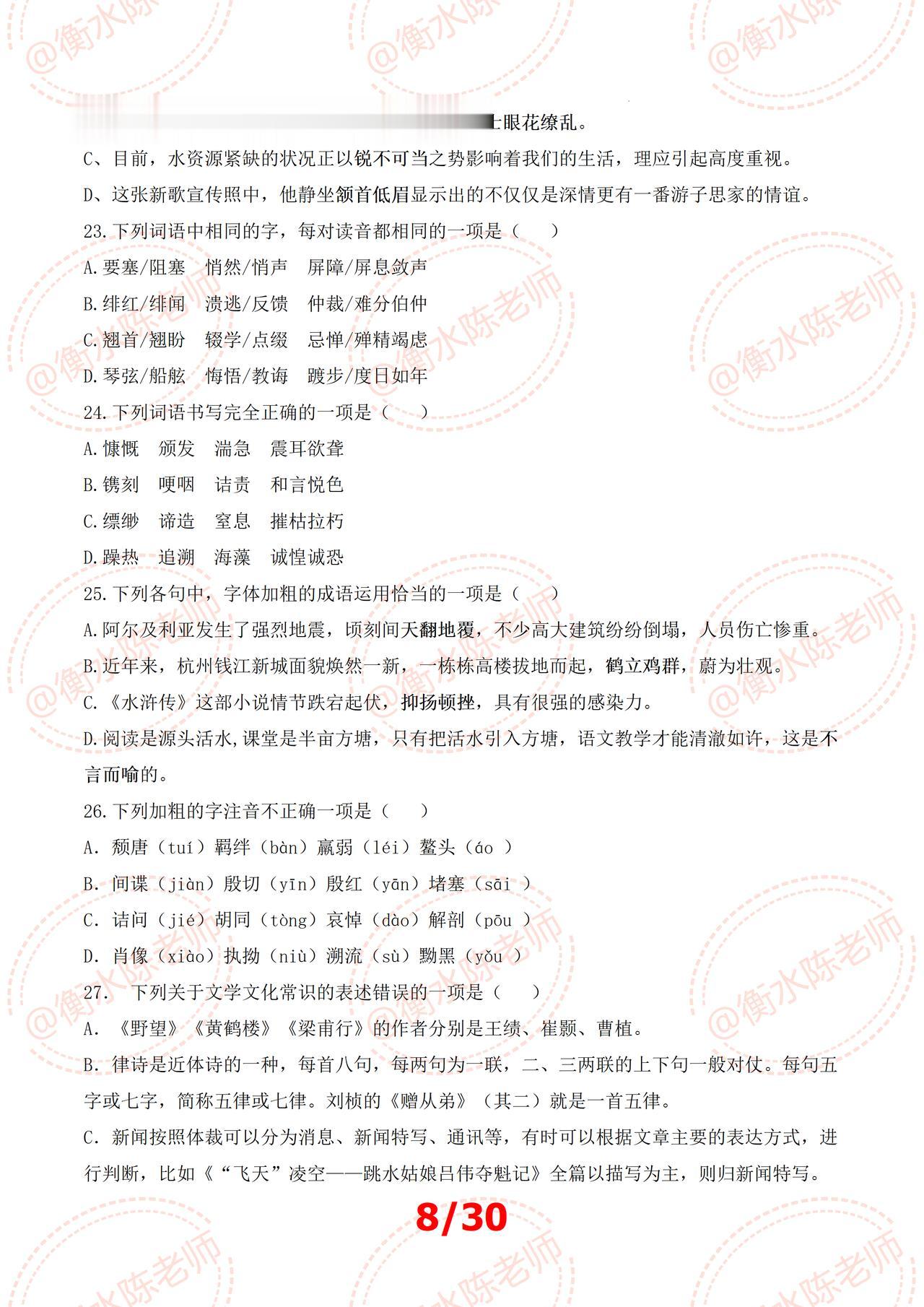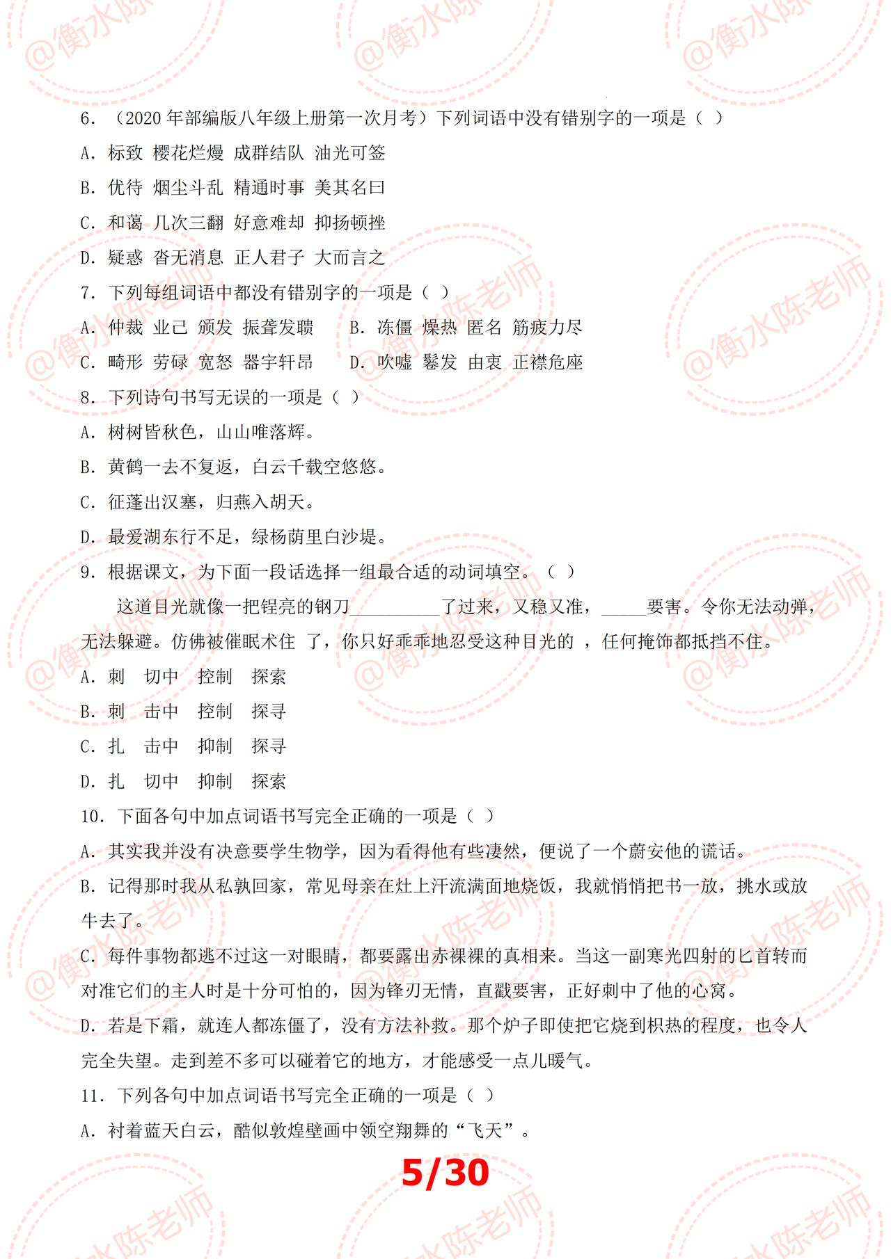 八年级上学期语文【期中考试】,【字词积累+文学常识】试卷常考题型,这部分内容也是平时考试中,经常出现,并且出错率极高的一个类型,期中考试之前,老师会把每一个能考到的内容,全部分享给大家,目的只有一个,考高分,拿班级、年级前三,由于资料比较多,只能发布一部分,想要获取全部的考生,记得和我沟通和联系哦。