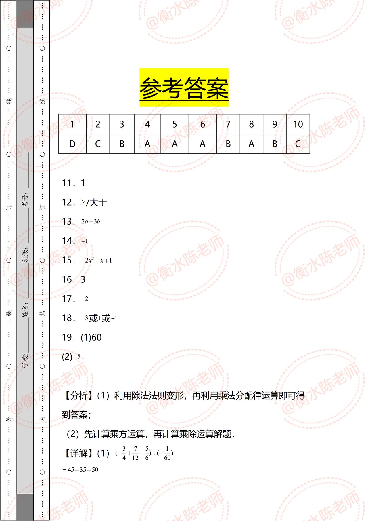 七年级上学期数学,期中考试重点试卷,根据不同的省份、城市、版本,学校考试重点编写的,成绩差,月考考试不是很理想,想要这次期中考试,找到自信,考出好成绩,提前做自己对应城市期中试卷哦,想要获取的考生,记得提前和我保持沟通、联系哦。
