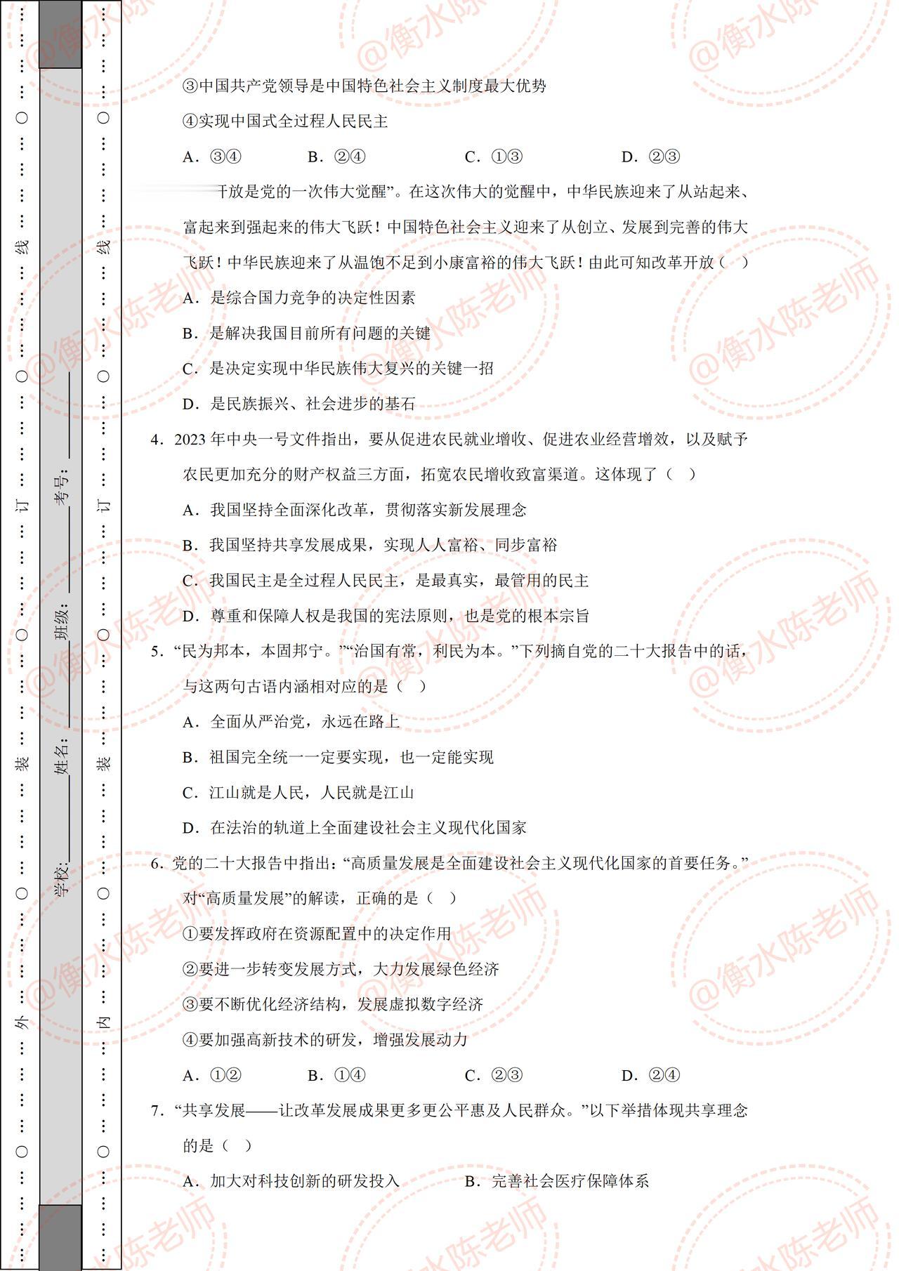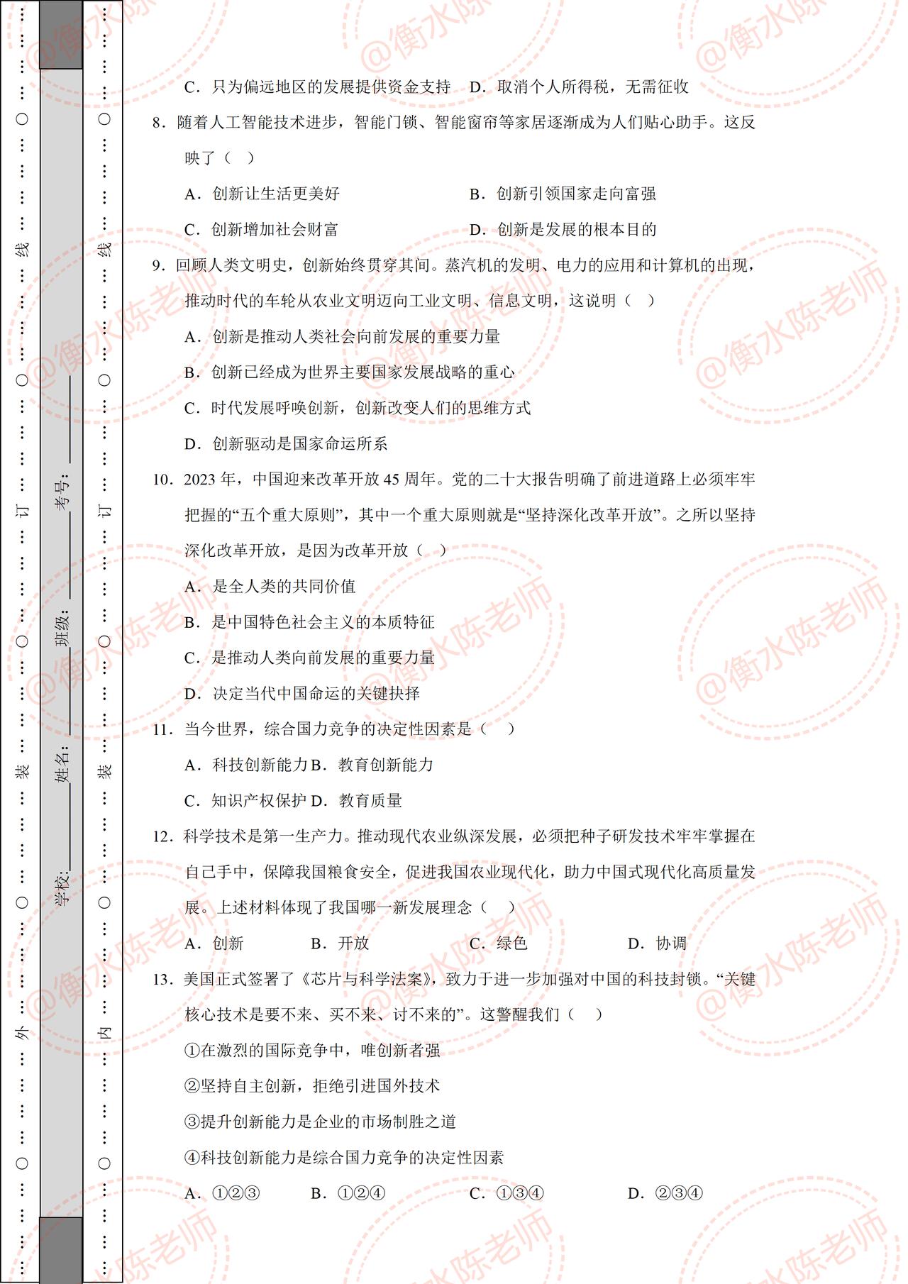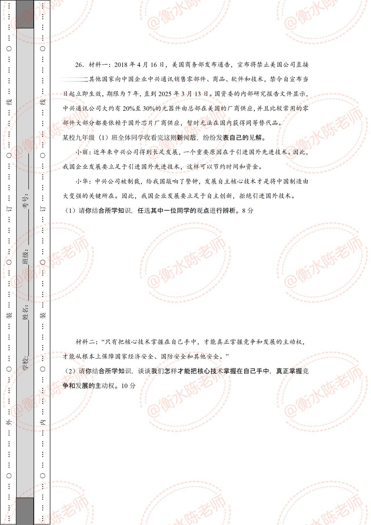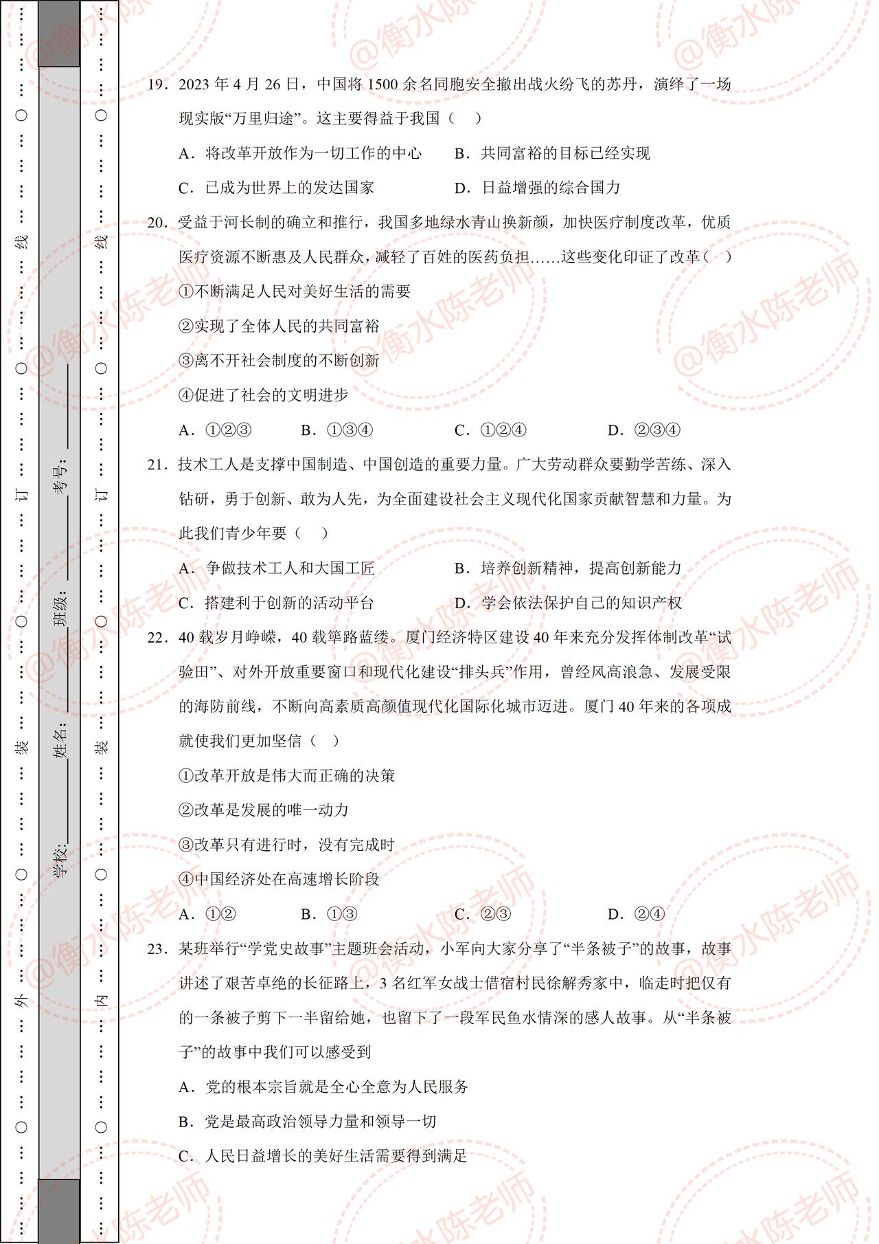 九年级上册政治,期中考试卷必出重点考题,期中卷根据不同城市、版本,考试重点编写的,这次期中考试,想要获得好成绩,进入到班级前三,提前做自己对应城市期中卷哦,想要获取的,和我聊一下,沟通一下哦,让你考试少走弯路,多挣考分哦。