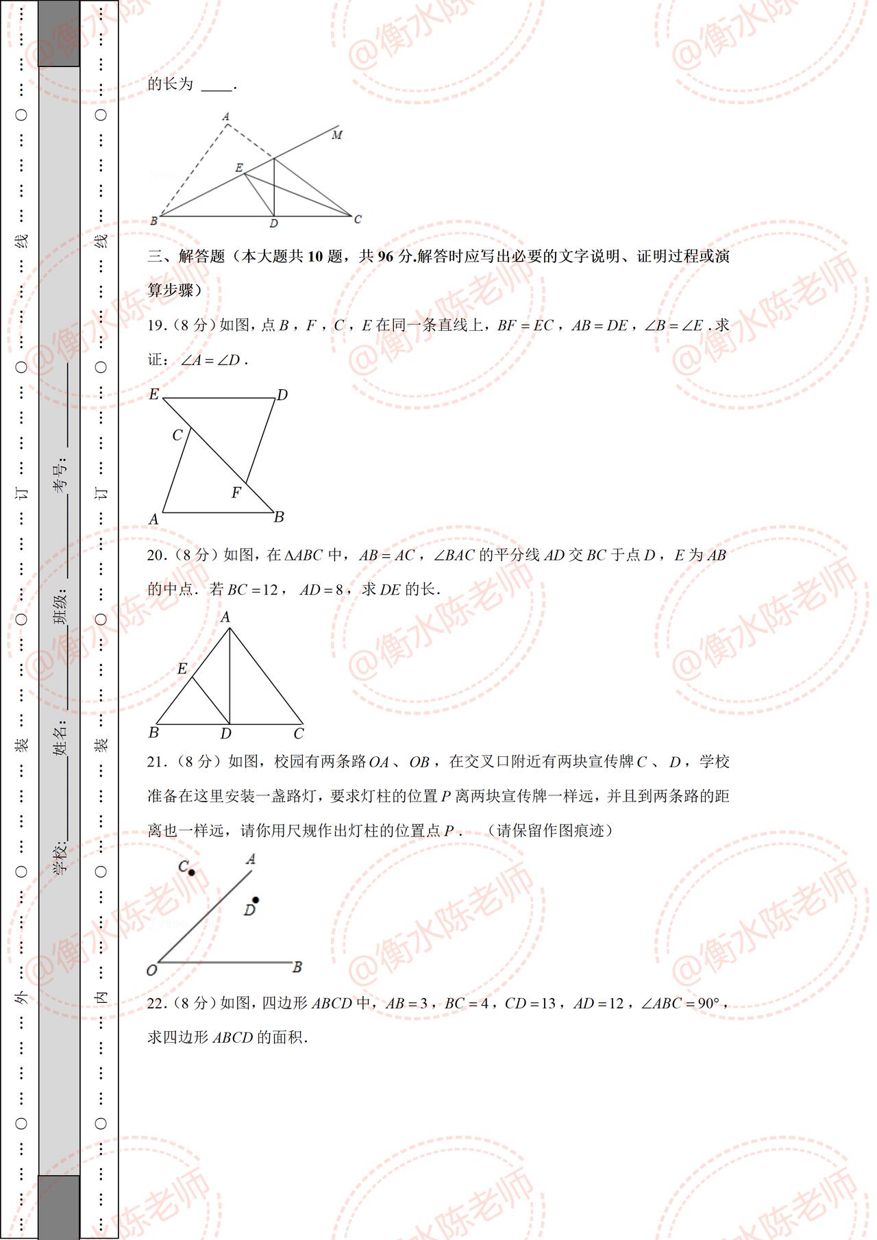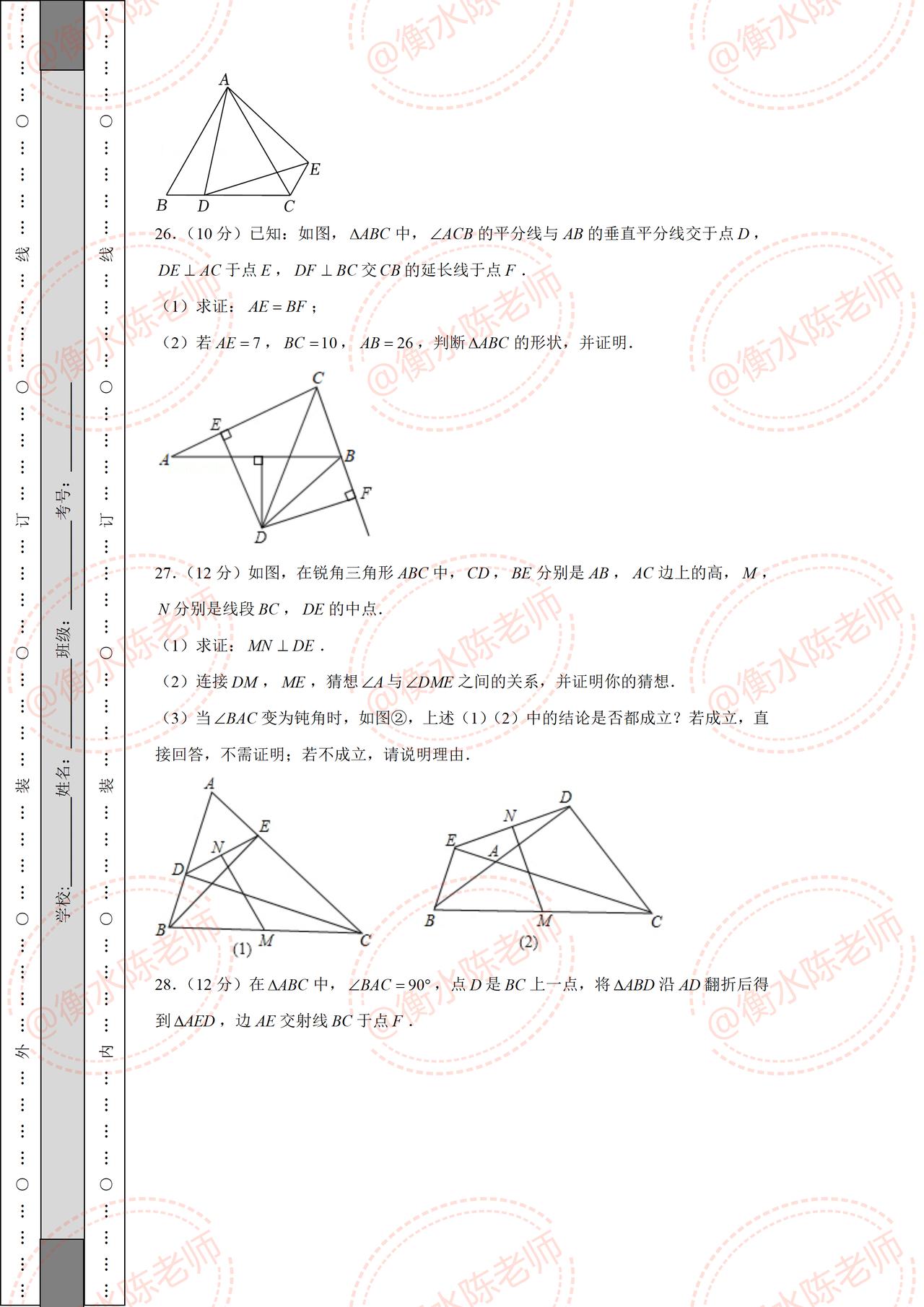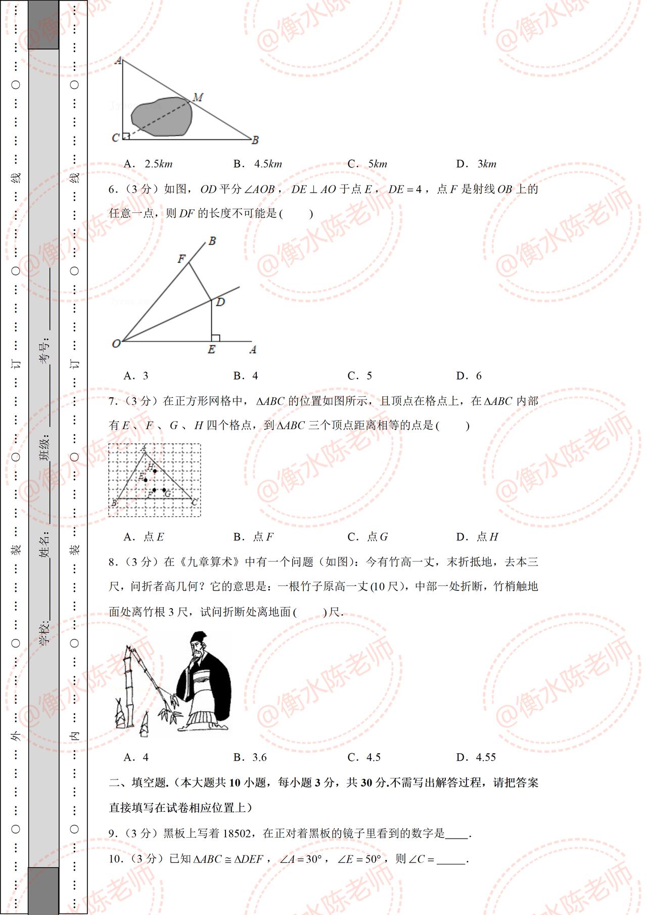 八年级上学期数学,期中考试卷必出、必考真题卷,考题是根据不同的城市、版本,学校考试重点编写的,月考成绩不理想,没考好的同学,想要这次期中考试考出优异成绩,获得班级前三的名次,考试之前记得做完自己城市对应期中卷,让你少走很多弯路哦,想要获取的,和我赶紧联系哦。