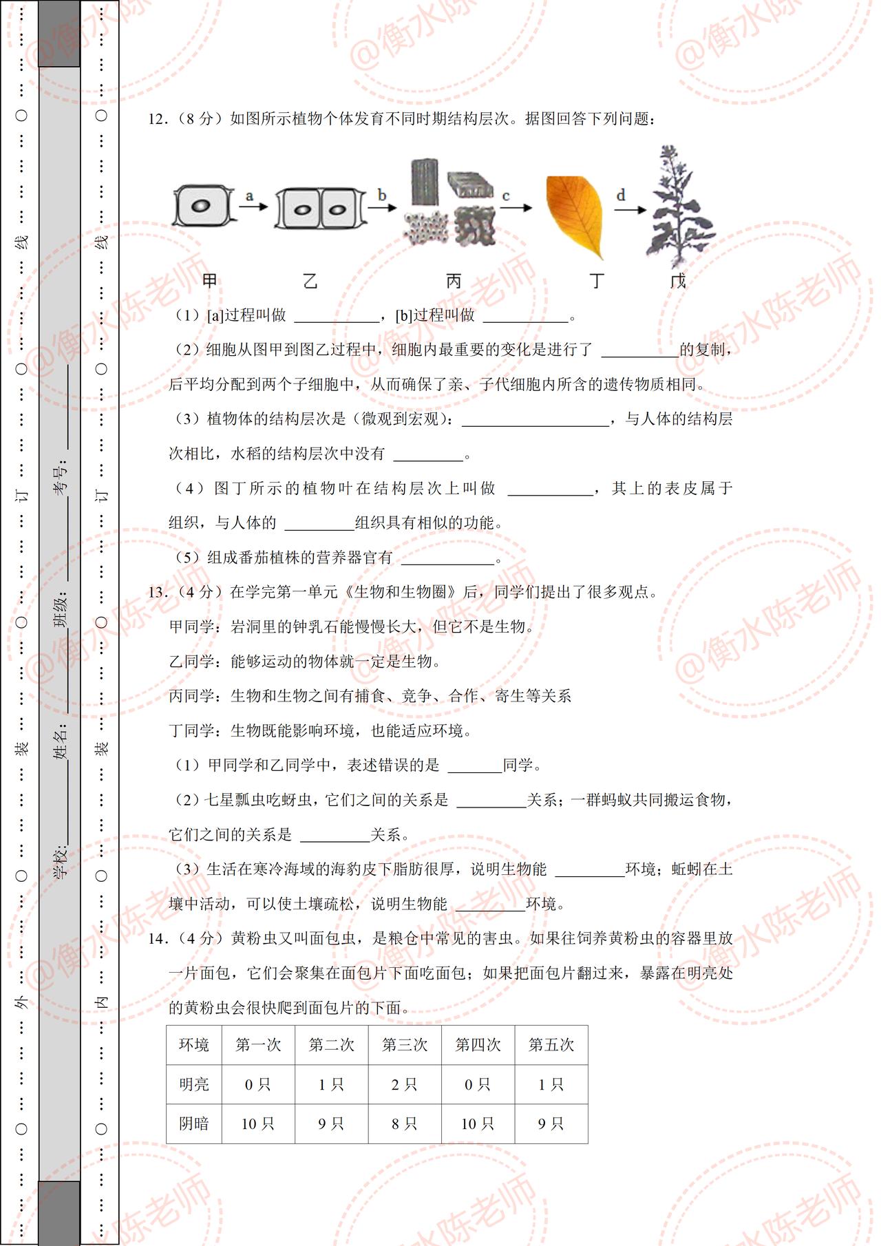 七年级上册生物,期中考试必出、必考真题试卷,期中试卷根据不同的城市、版本,学校编写的,想要考出好成绩,少走弯路,多挣很多分数,提前做自己对应城市期中试卷哦,想要获取的考生,记得和我沟通联系即可。