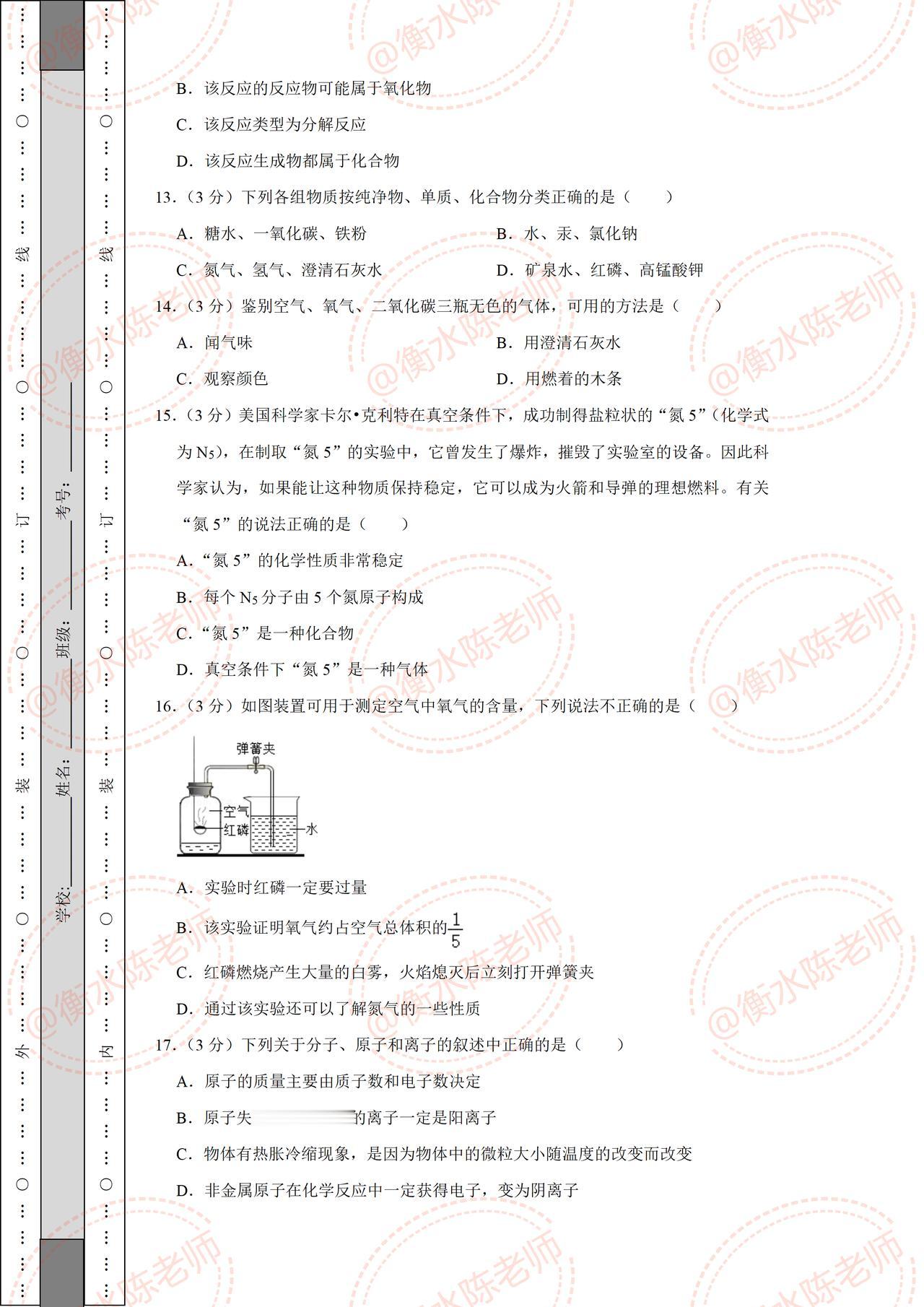九年级上学期化学,期中考试重点考题提前发给大家,考试卷根据不同的城市、版本编写的热点考题,化学月考没有考试好的同学,提前做一下自己城市对应的期中考试卷哦,让你少迷路,多挣考试分数哦。