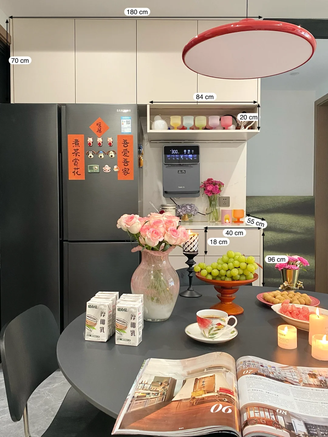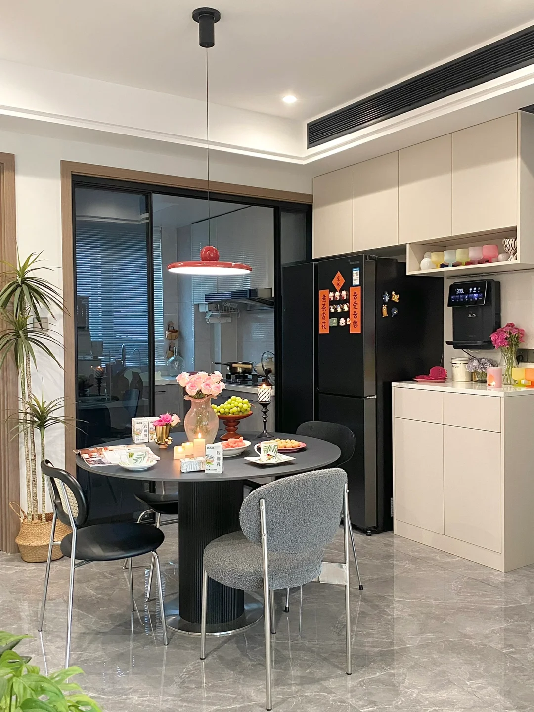 🏷冰箱内嵌进餐边柜,释放厨房空间,动线合理,拿取食材方便