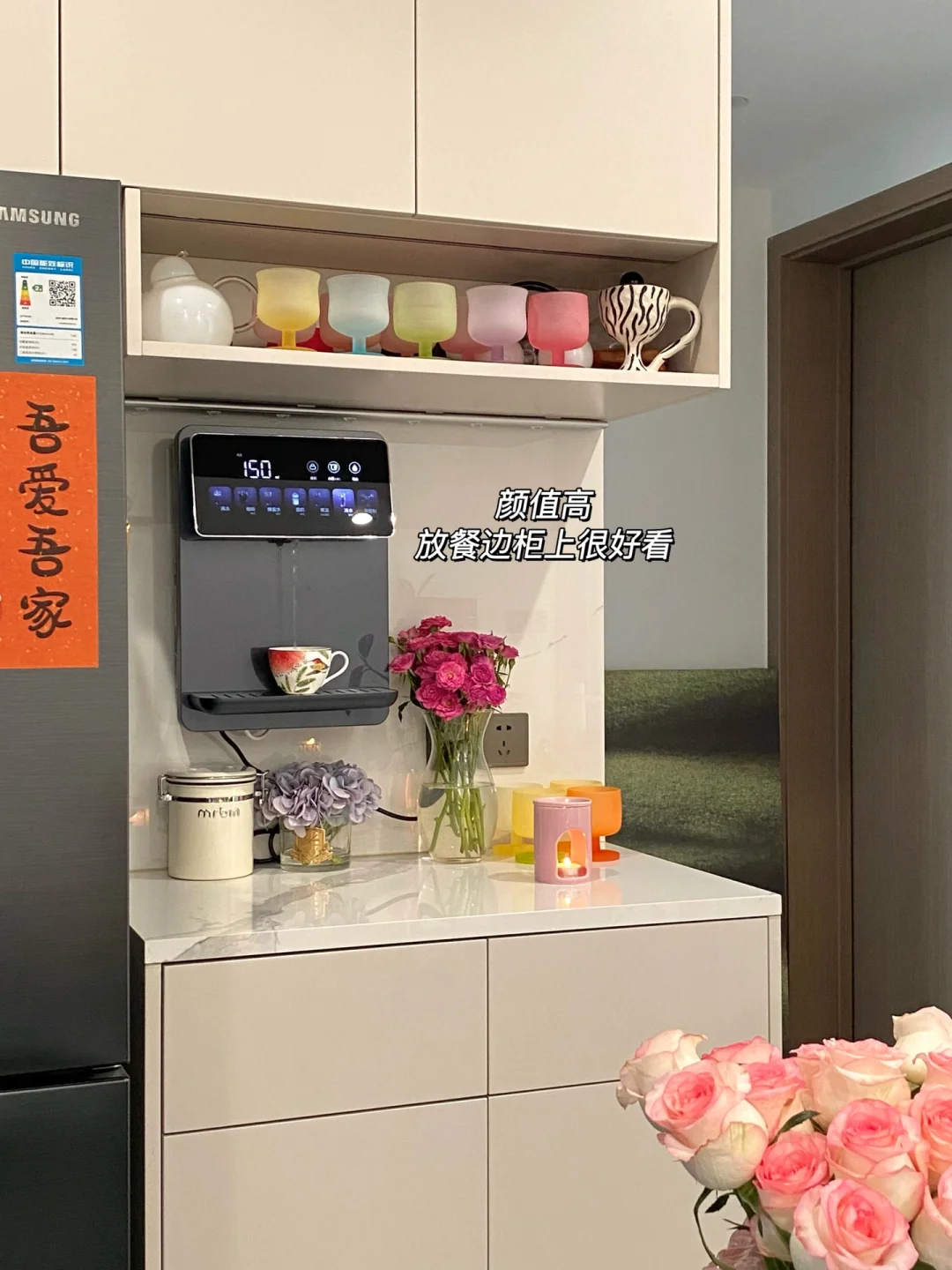 ◾️直接连接厨房的厨下净水器,不需要手动加水,随时都有水喝。而且预埋管道的好处就是可以将管线机安排在餐边柜上,日常接水很方便,再也不用进出厨房~