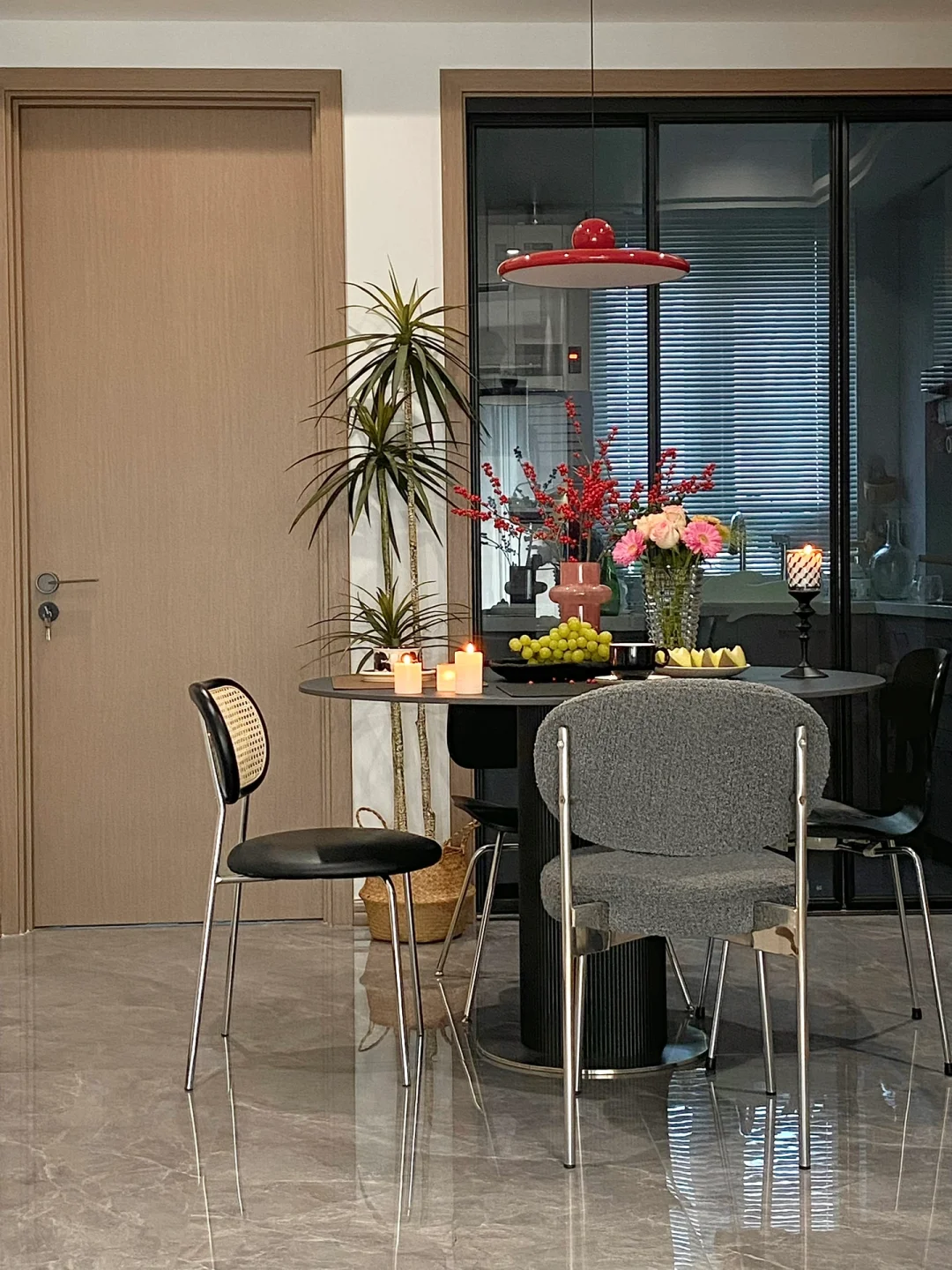 🏷餐厅8平米,放了1.2米黑色岩板餐桌简约耐看