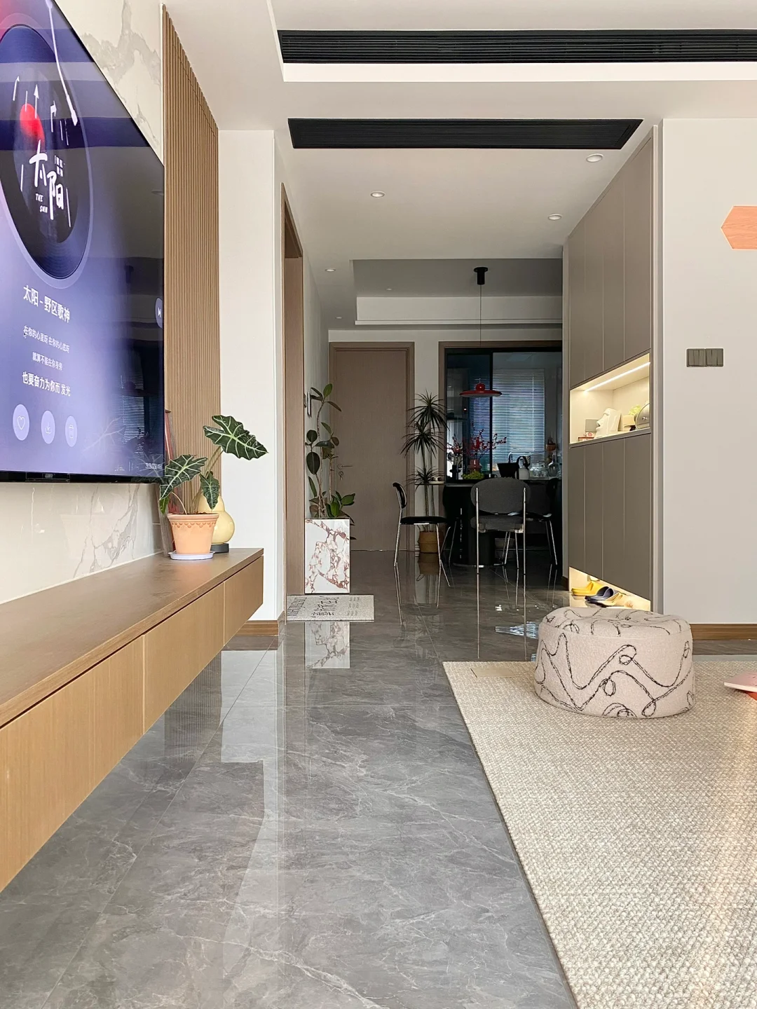 现在特别流行大岩板通铺,我家是750*1500mm的大砖,现在看着还是不够大,有点想换个更大的砖了。最近去东鹏线下看了,他们家但是现在东鹏已经有900*1800mm的大规格岩板,通铺会显得更加大气通透,搭配好美缝直接呈现一整片的效果,让整个空间显大1倍都不止~重点是还不会藏污纳垢,好打理也好保养,对懒人来说很友好。