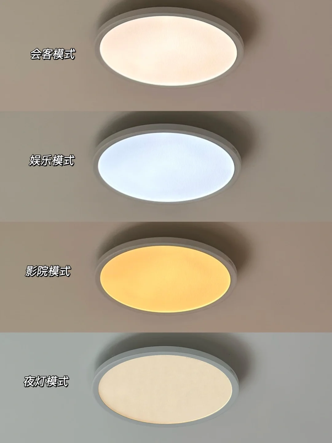 我家这款欧普智慧光吸顶灯有会客、娱乐、影院、夜灯主面光、氛围光6种场景模式,可以用手机米家智控或者Siri等多种语音直接操作,简单方便。白天一般用白光,光线很柔和,晚上睡前就会用夜灯模式,黄黄的灯光很有氛围感,哈哈~
