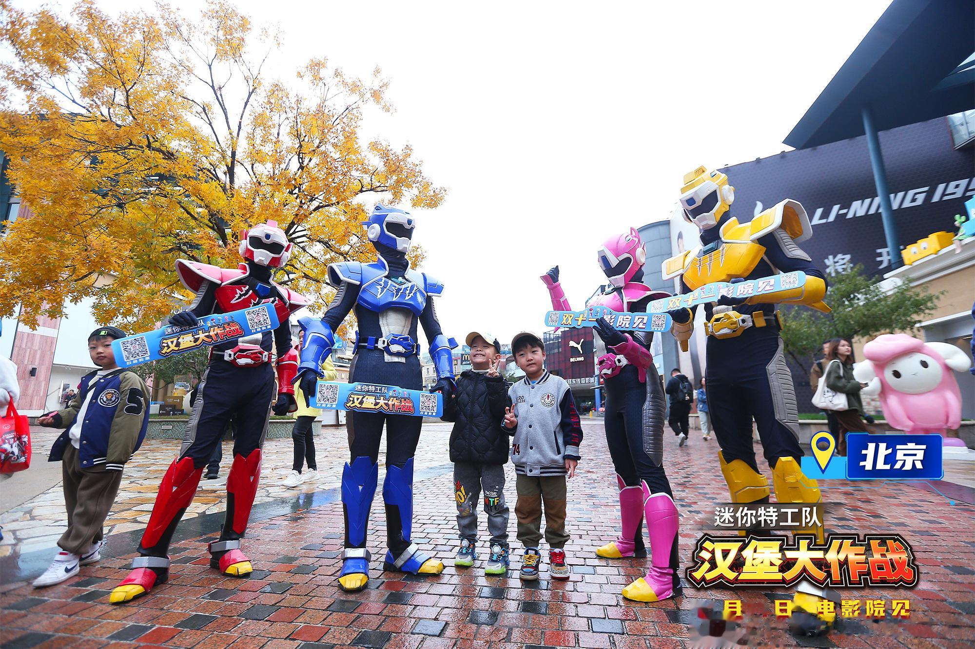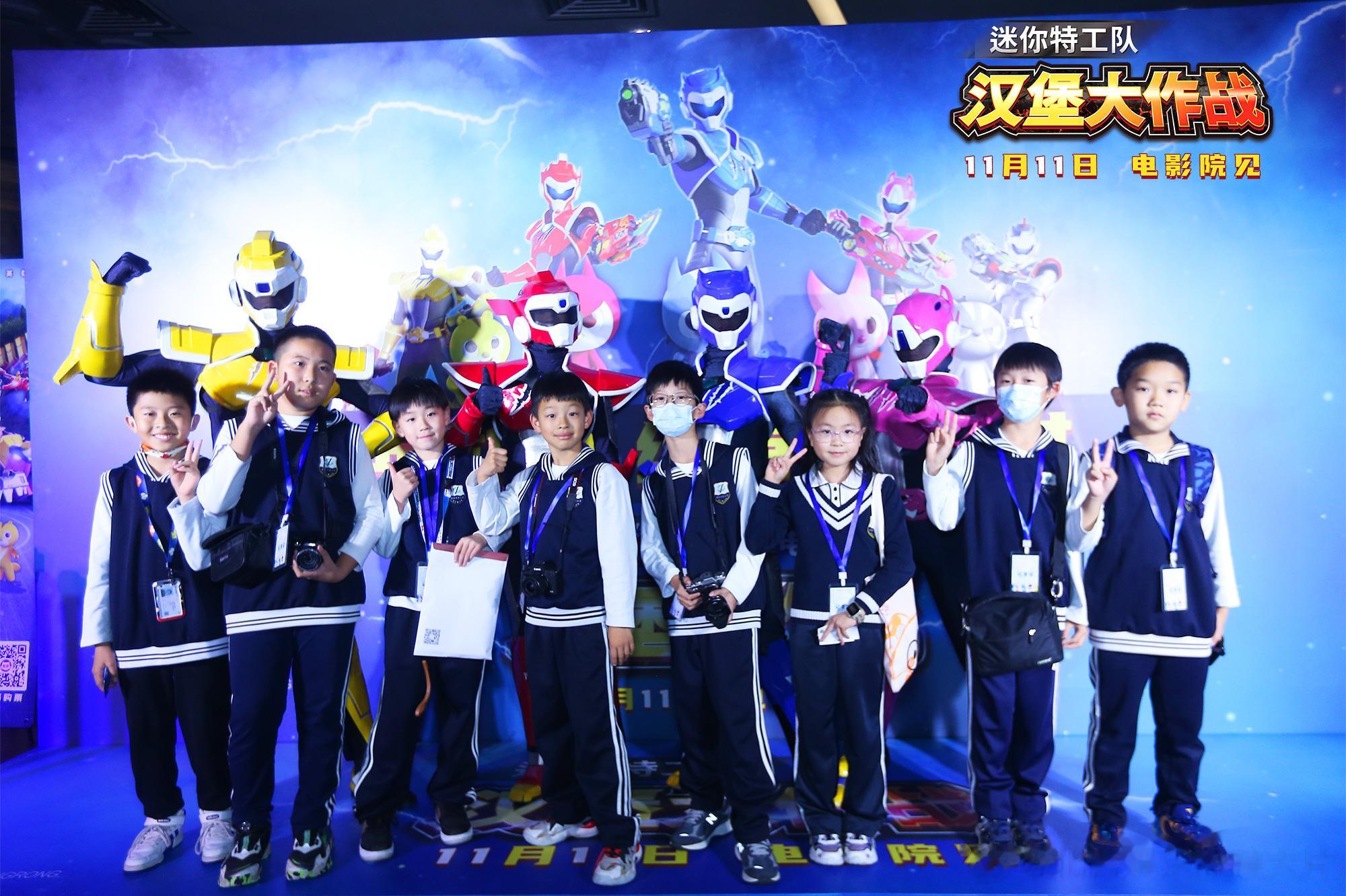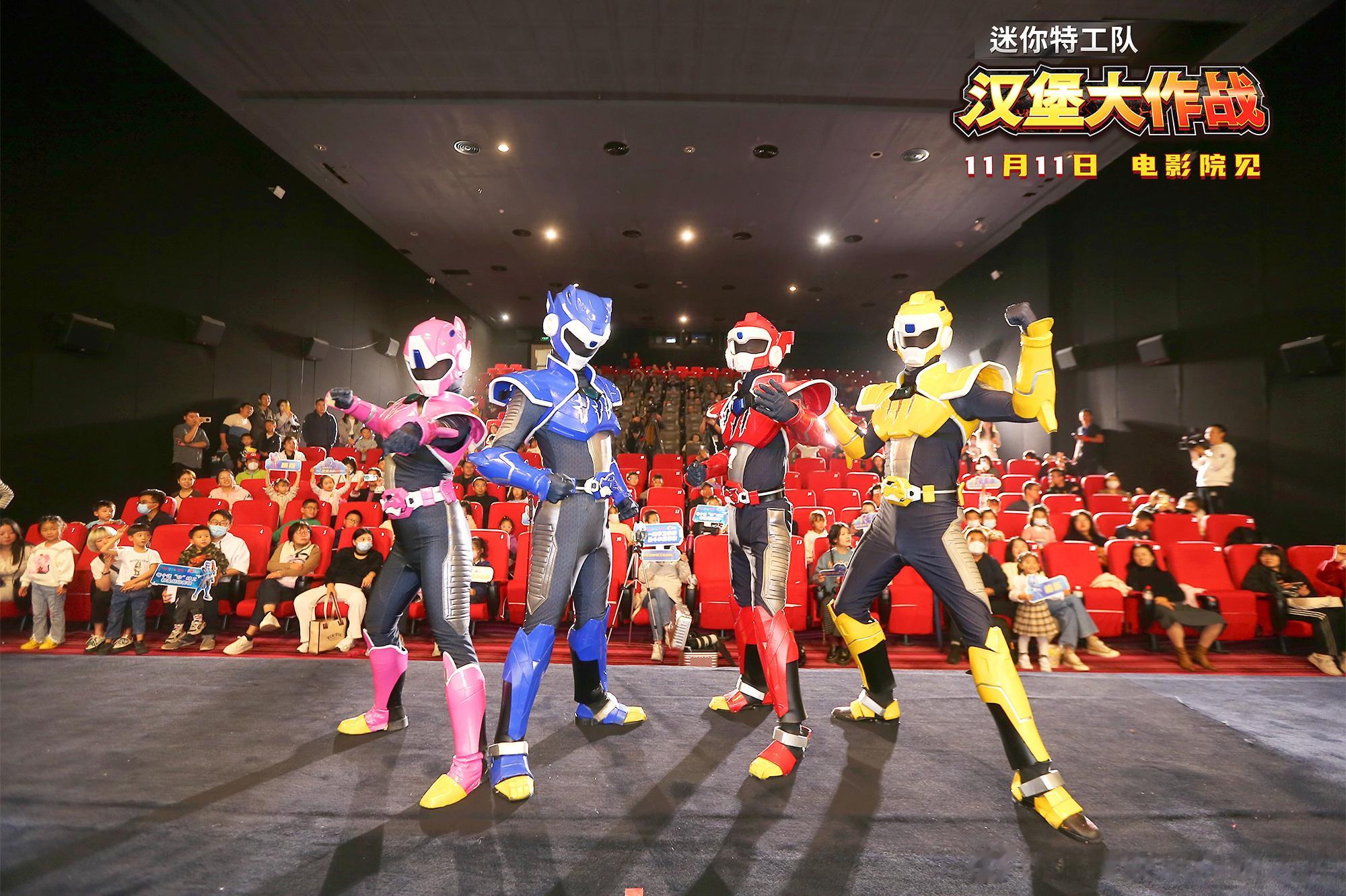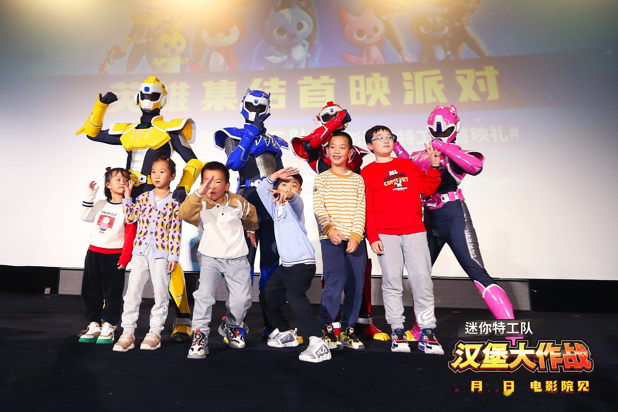 #电影迷你特工队首映礼# 特工队成员福乐、小米、路茜、麦思首度合体亮相北京首映派对,小朋友热情合影,学习作战pose,小朋友的世界不能没有超级英雄,11月11日,电影全国上映,召唤超级恐龙力量,一起变身!#电影迷你特工队之汉堡大作战#