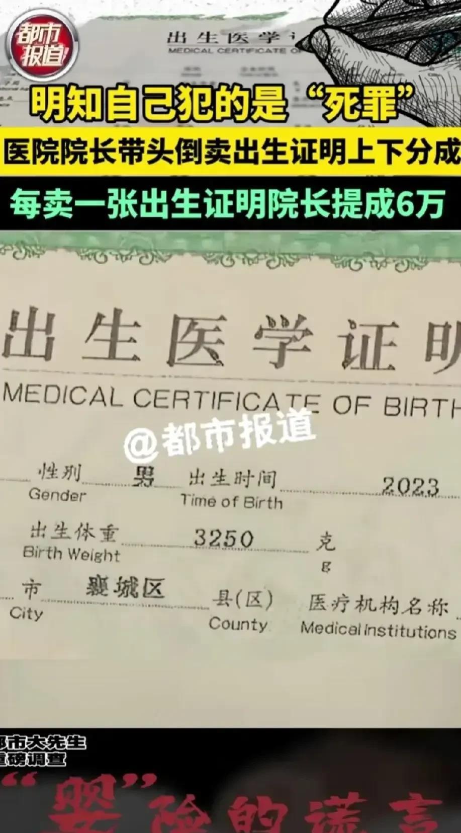 简直是震碎三观!医院卖9.6万一张出生证明,提成6万。全套手续做足,给拐卖的孩子重新披上合法的外衣。这位院长是披着白衣天使外衣的真正恶魔,是拐卖儿童的犯罪团伙。