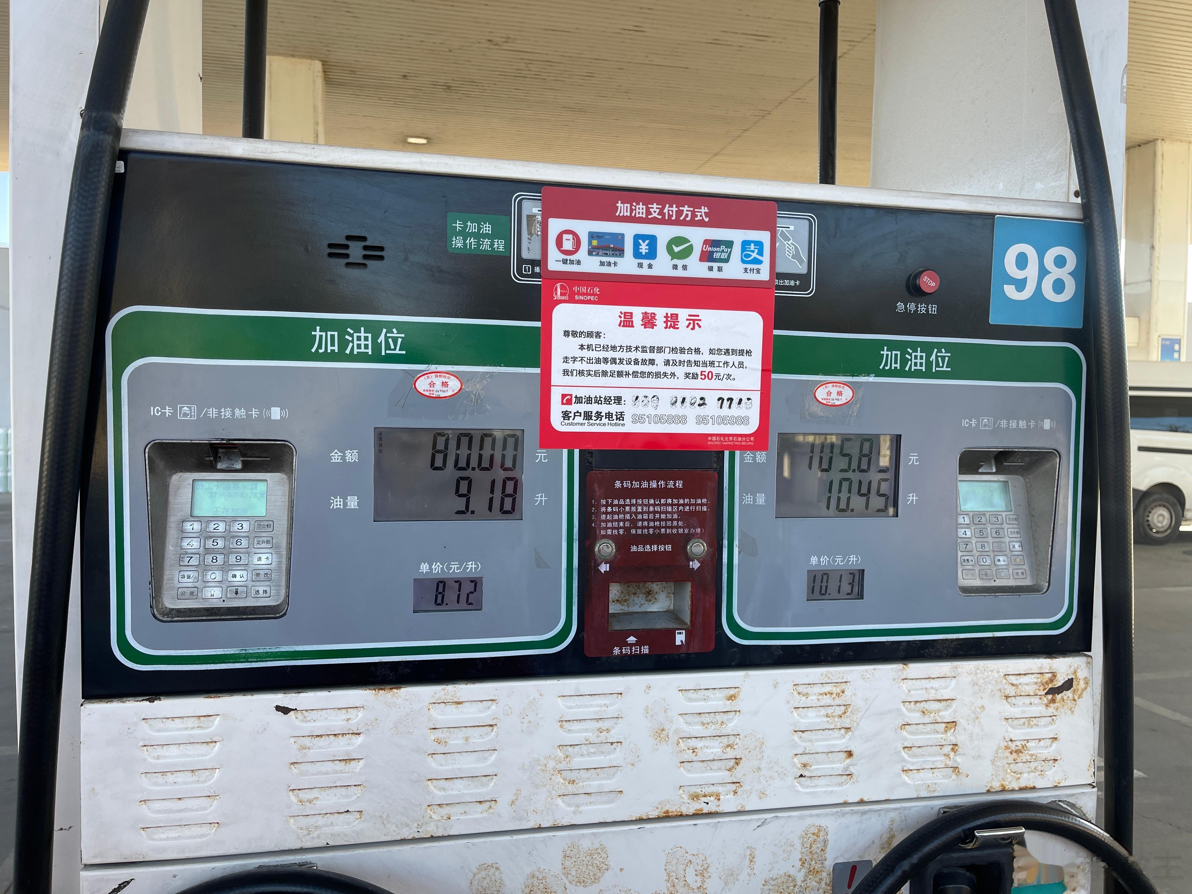 我说加98,师傅说好,然后很熟练的给我加了95...还好我反应快,及时拍照发动