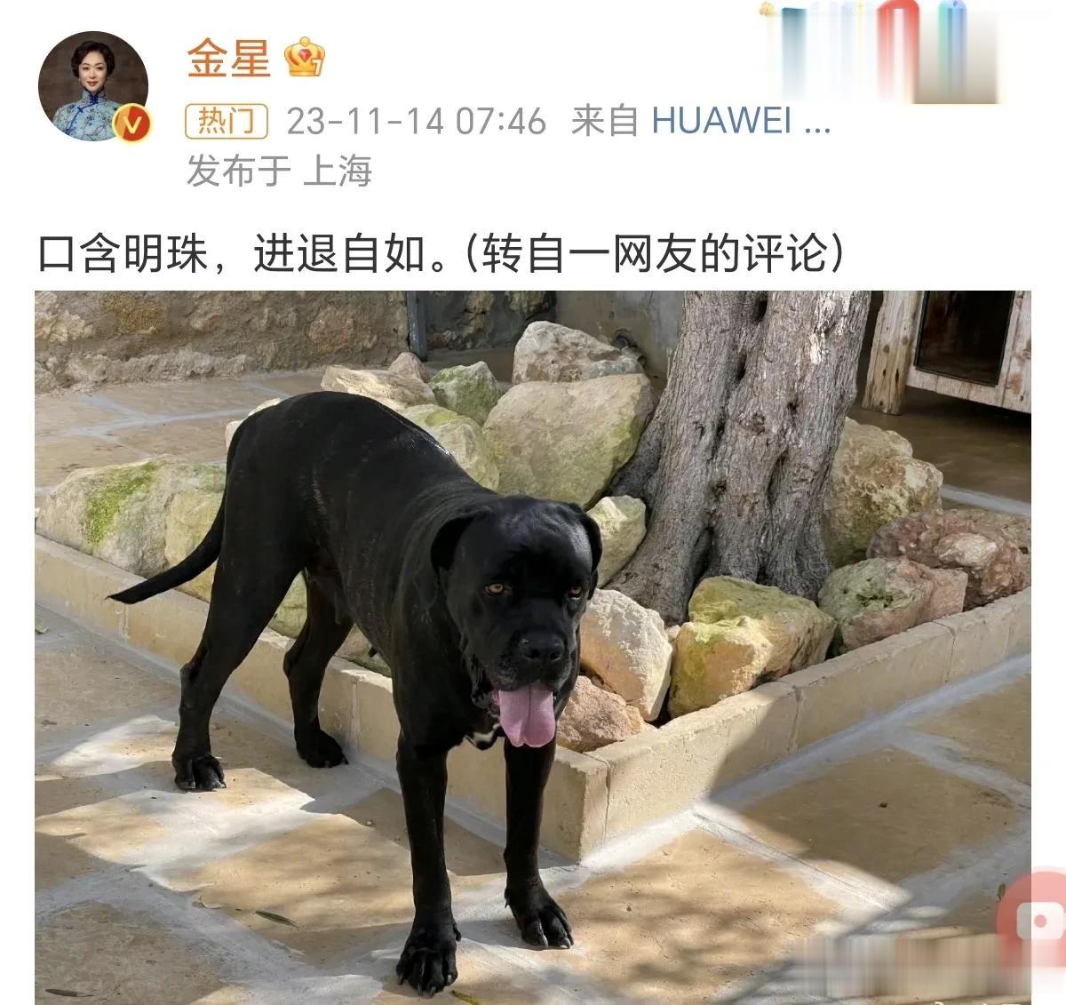 金星最近她暗讽的人有点多啊! 有次直播,先是让网友猜她不喜欢的女演员是谁,她说:电影演的不错,得过很多奖,演戏也很有灵性,但是人品很差,家教不好很没有礼貌,圈里都知道她,都不喜欢她。 最近又看见她发了一条动态,口含明珠,进退自如,配了一张狗的图片。 网友:还得是金姐,很敢说。 网友:金星这样暗讽别人好么?我感觉一个公众人物不该这样,这样也很没礼貌。
