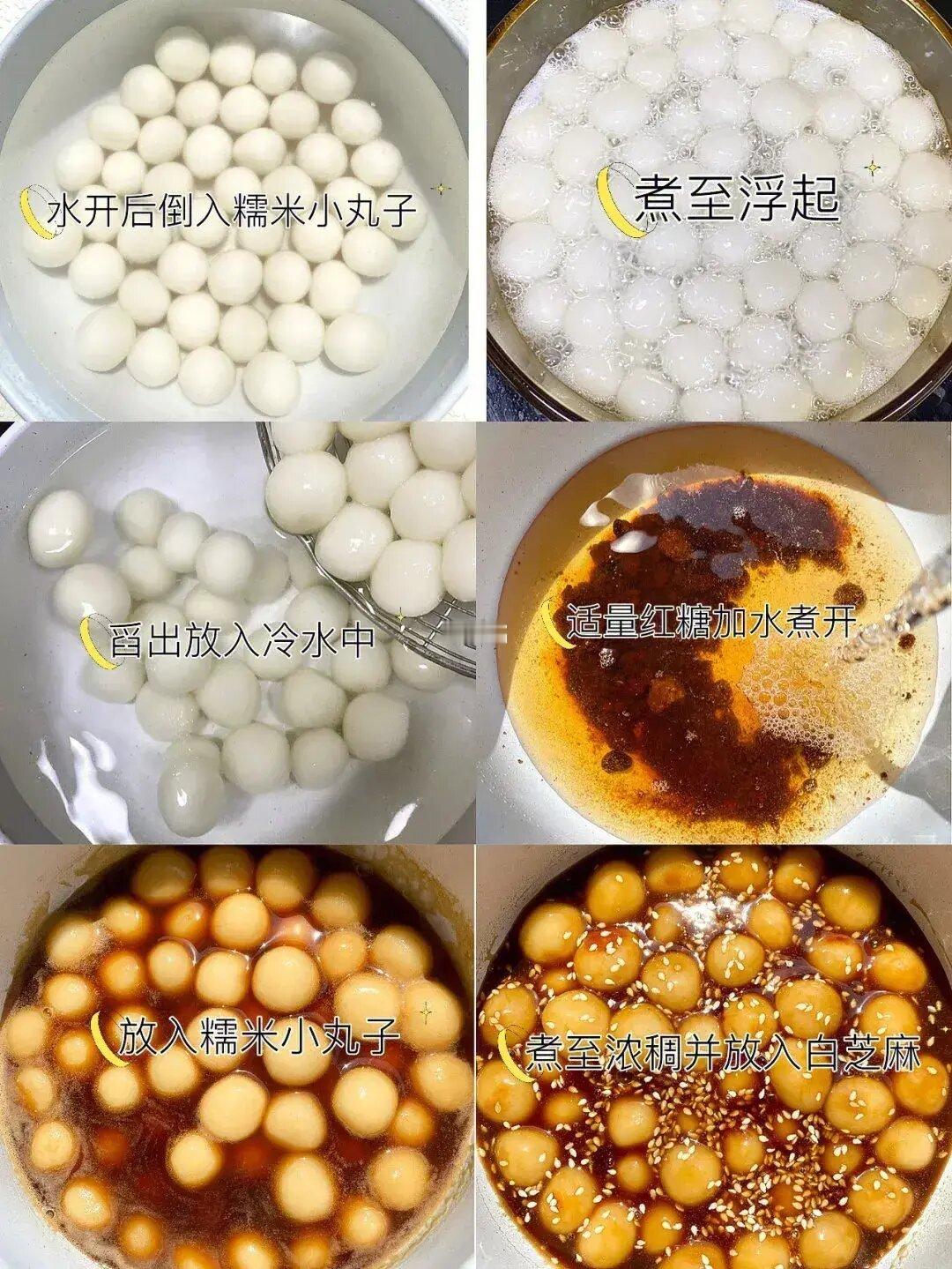 红糖糯米小圆子~ 热呼呼糯唧唧! 吃完整个人都舒畅啦! 做法简单一看就会👀 1⃣️碗中放糯米粉,加少量水揉成团,用手搓成一粒粒小圆球~ 2⃣️锅中烧开水放入小圆子,煮至飘起后捞出过凉水 3⃣️锅中留少许水,放1块红糖,煮沸后放入小圆子,收汁至汤汁浓稠就OK啦~